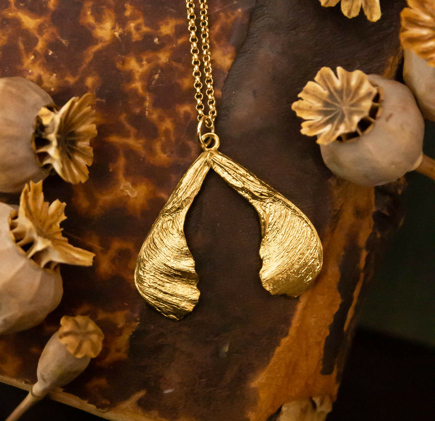 Colgante basado en la semilla de Arce, popularmente llamada helicóptero. Pertenece a la colección Bosque de Midas, donde trabajamos con la matriz de la semilla real, hecho en plata 950.