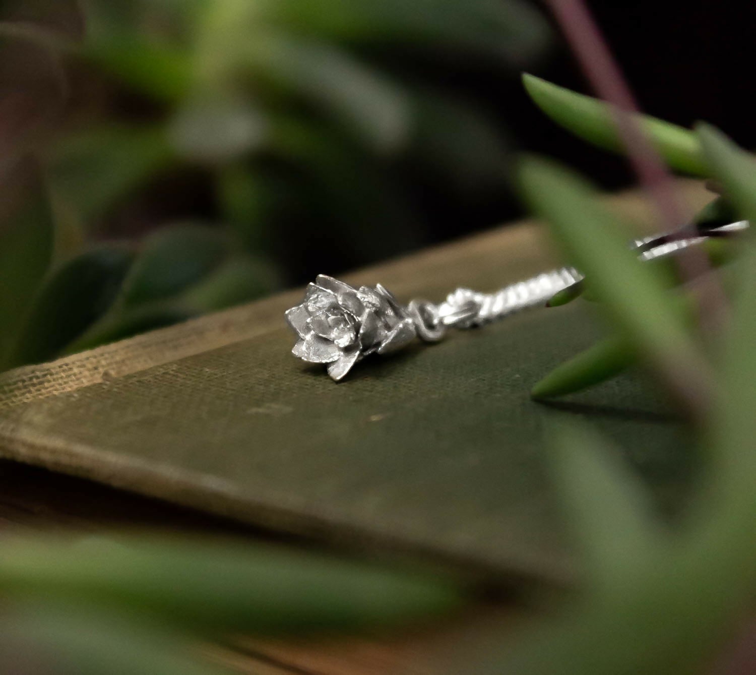 Colgante de Suculenta de tamaño mini. Pertenece a la serie Suculentas, donde rescatamos las formas y simetrías de estas increíbles plantas. Hecha en plata 950.