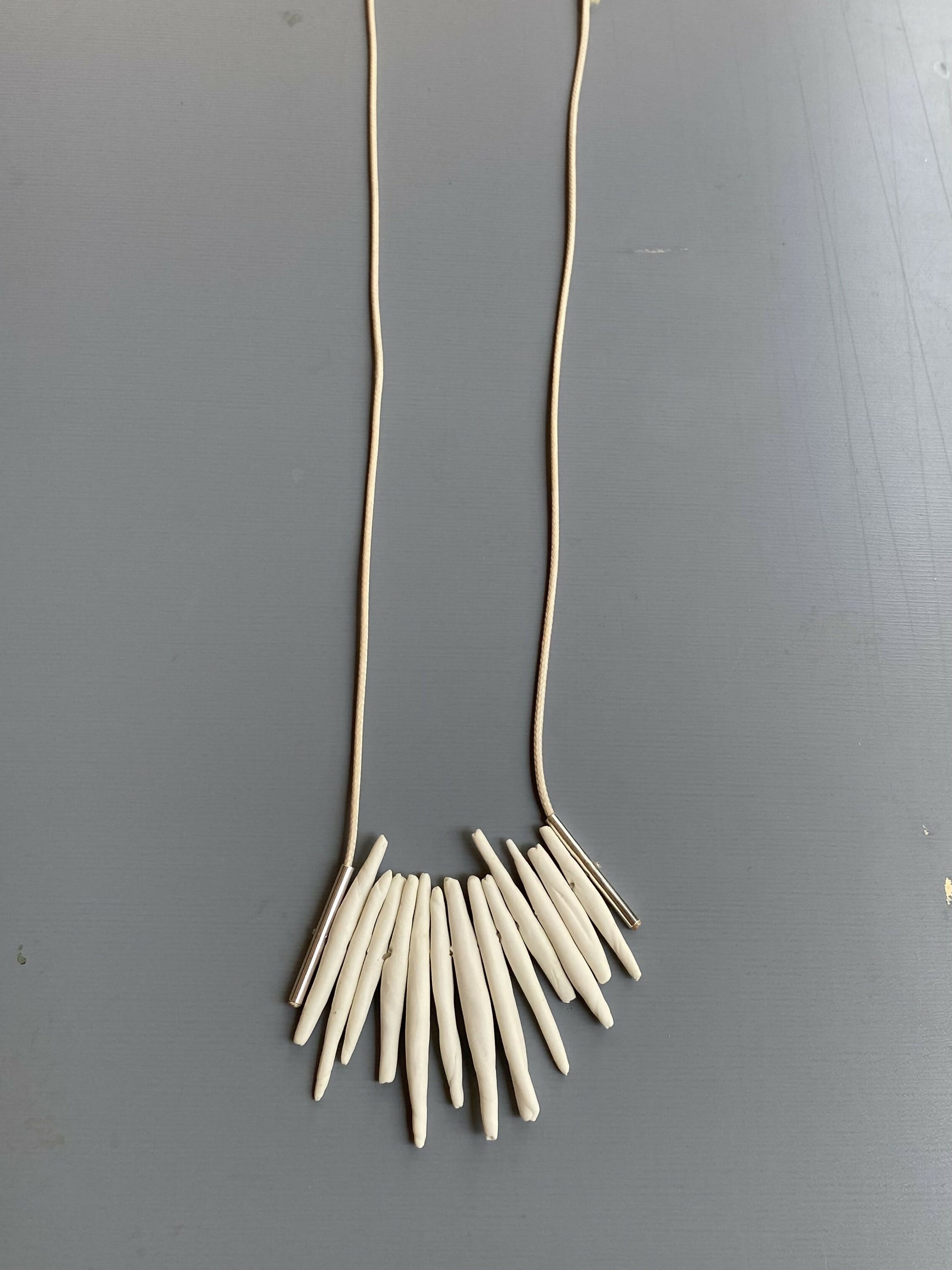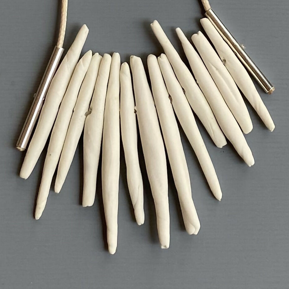 Collar barras de porcelana blanca, modeladas a mano, cordón sedoso ajustable y tubos de plata 950