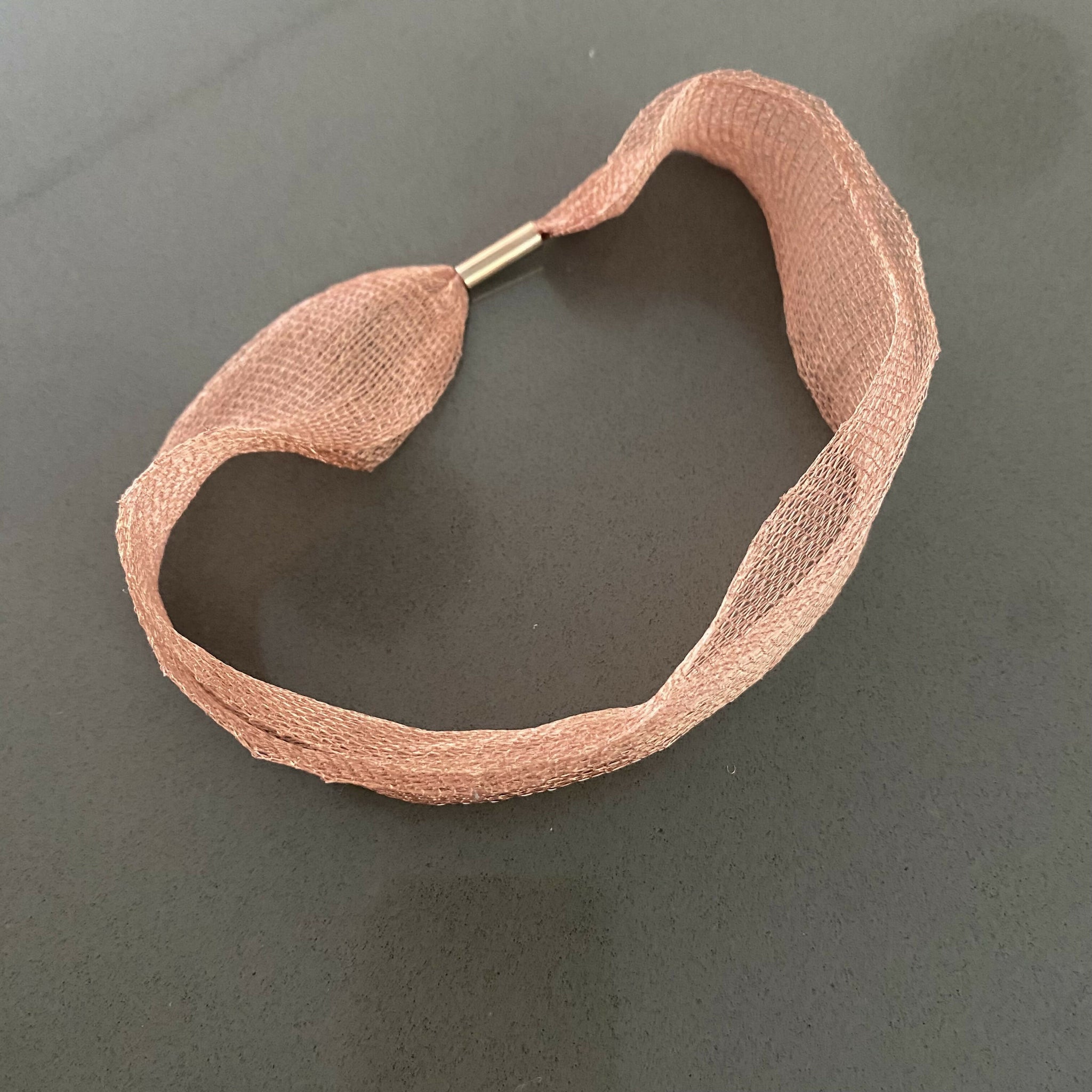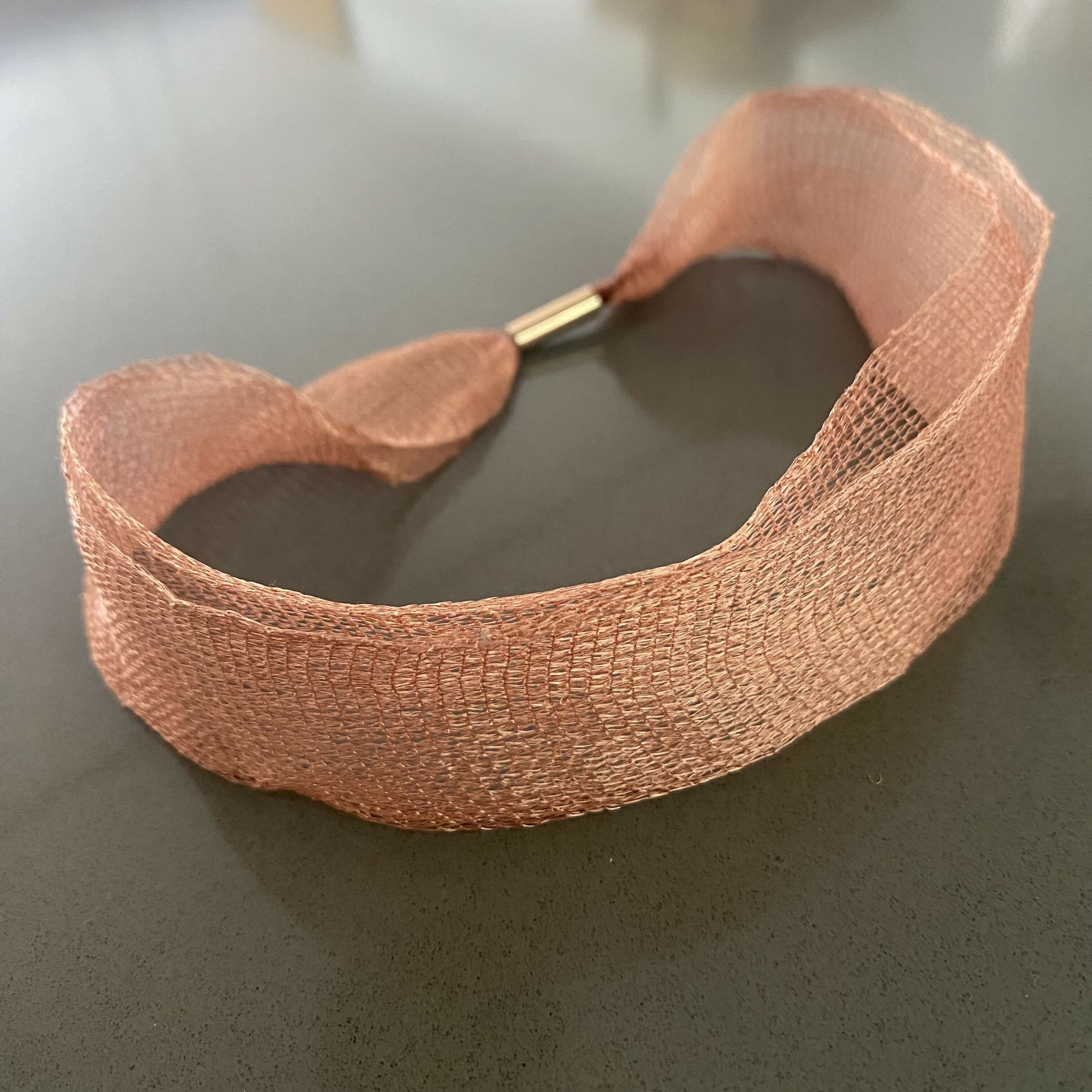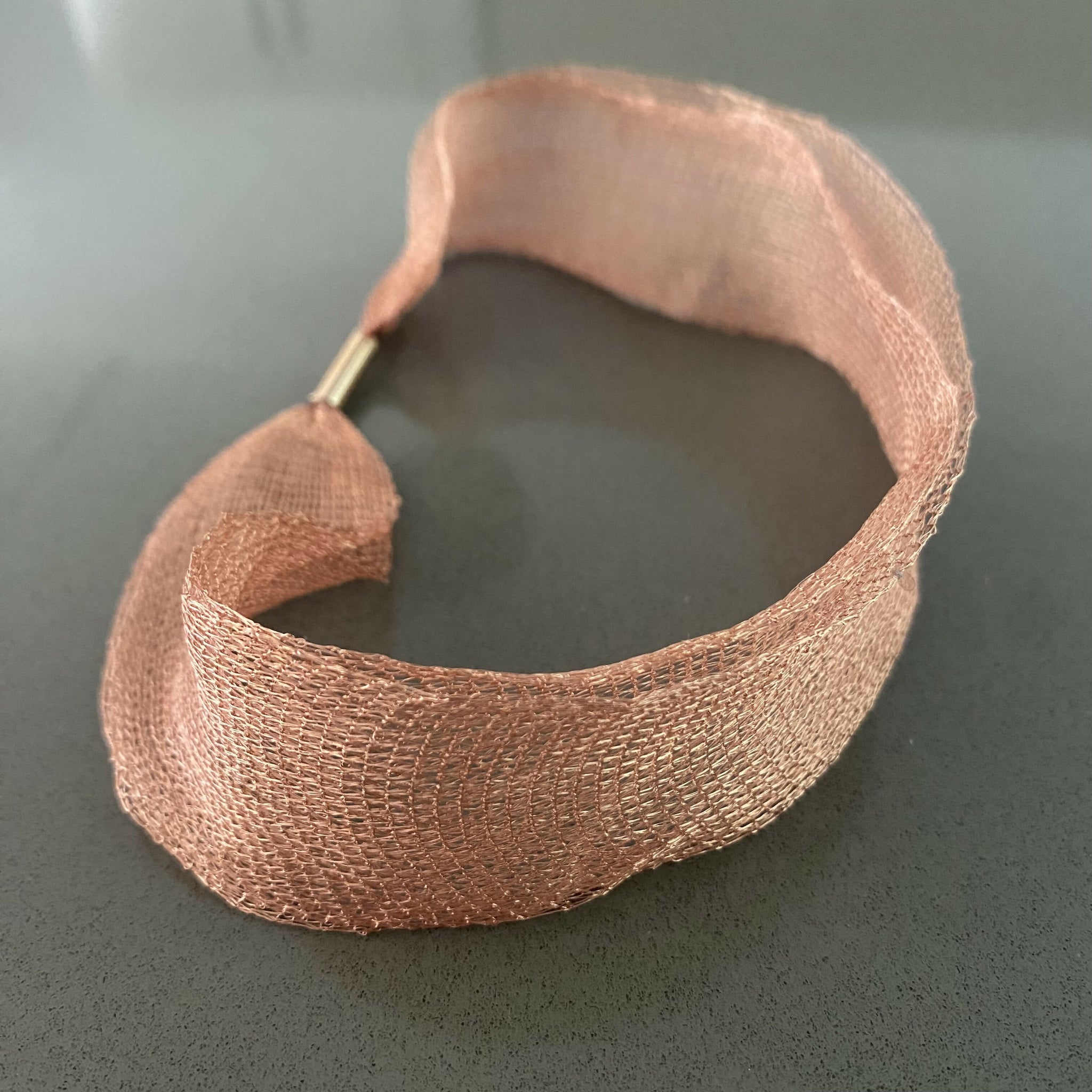 collar corto tejido cobre natural doble, broche iman
