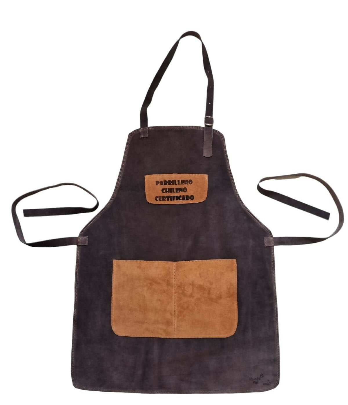 Pechera Cuero Reno Café Oscuro "PARRILLERO CHILENO CERTIFICADO"