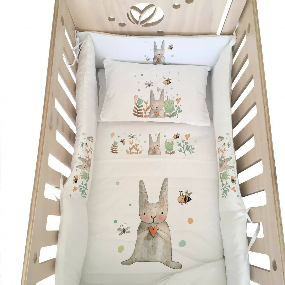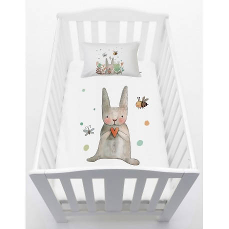 Cuna (colchón 140 x 70 cm). Incluye funda de plumón de, 105 x 145 cm. y funda de almohada de 50 x 30 cm.
