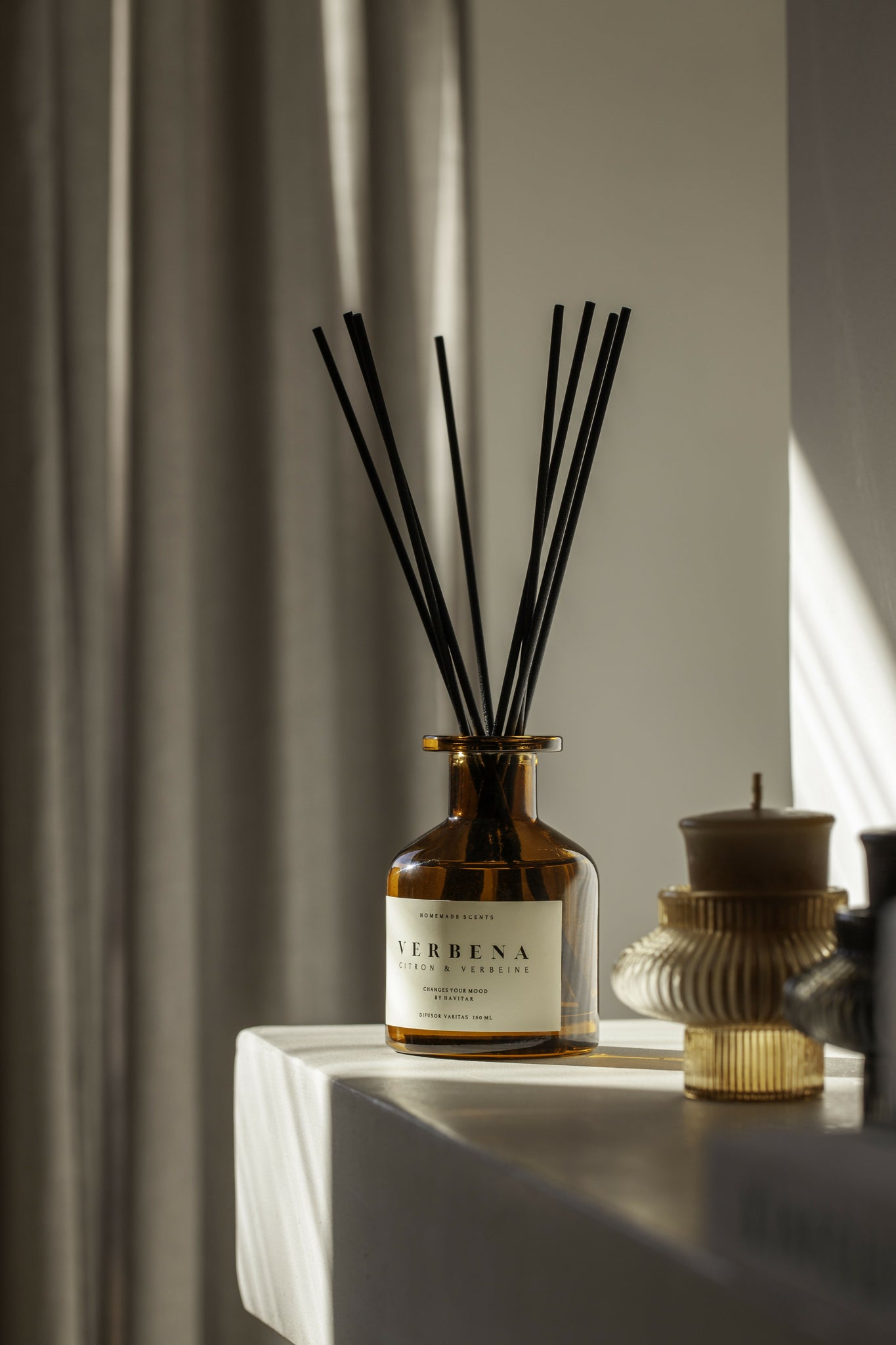 Difusor ambiental de varitas para aromatizar tus rincones preferidos, este formato permite que la fragancia perdure en el ambiente de manera uniforme y continua.