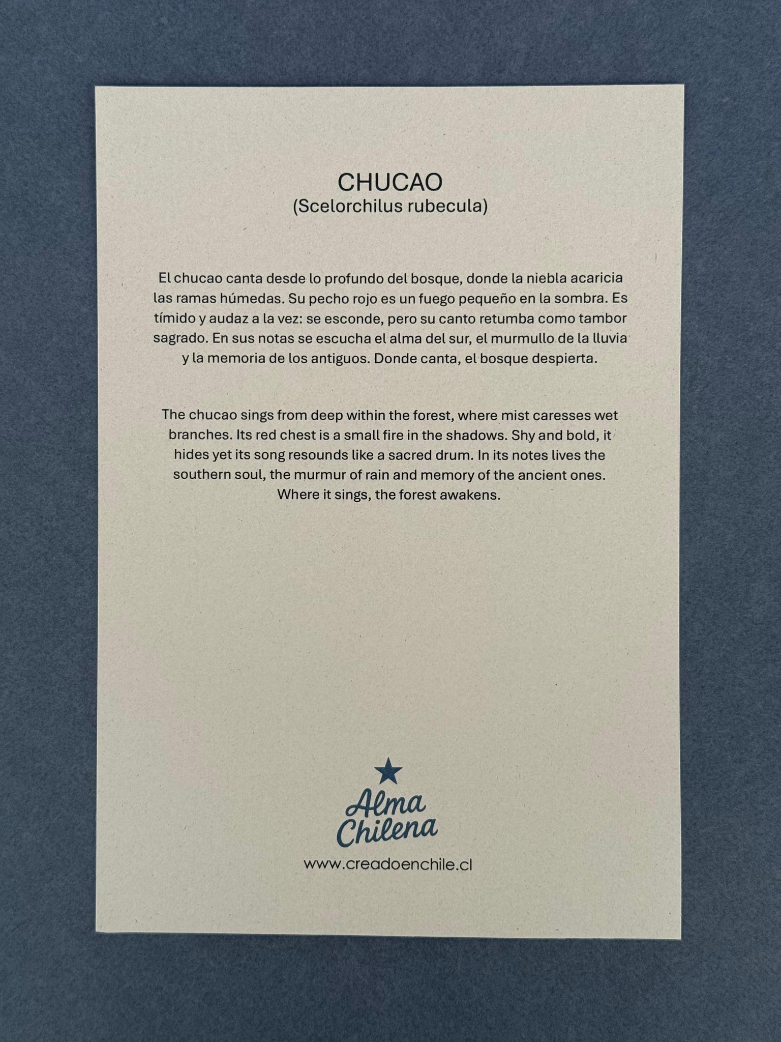 Impreso en papel texturado Fine Art de alto gramaje, este retrato es ideal para amantes de la naturaleza, observadores de aves y quienes guardan recuerdos del sur entre ramas y senderos.