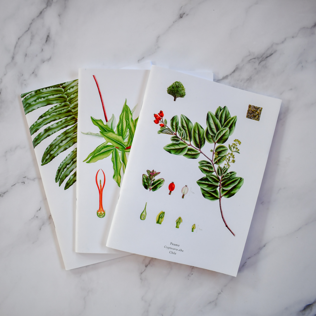 Libretas ilustradas que buscan propagar la flora y fauna chilena y así generar conciencia de las especies que tenemos y su conservación.  En su primera hoja podrás encontrar la descripción de cada especie.