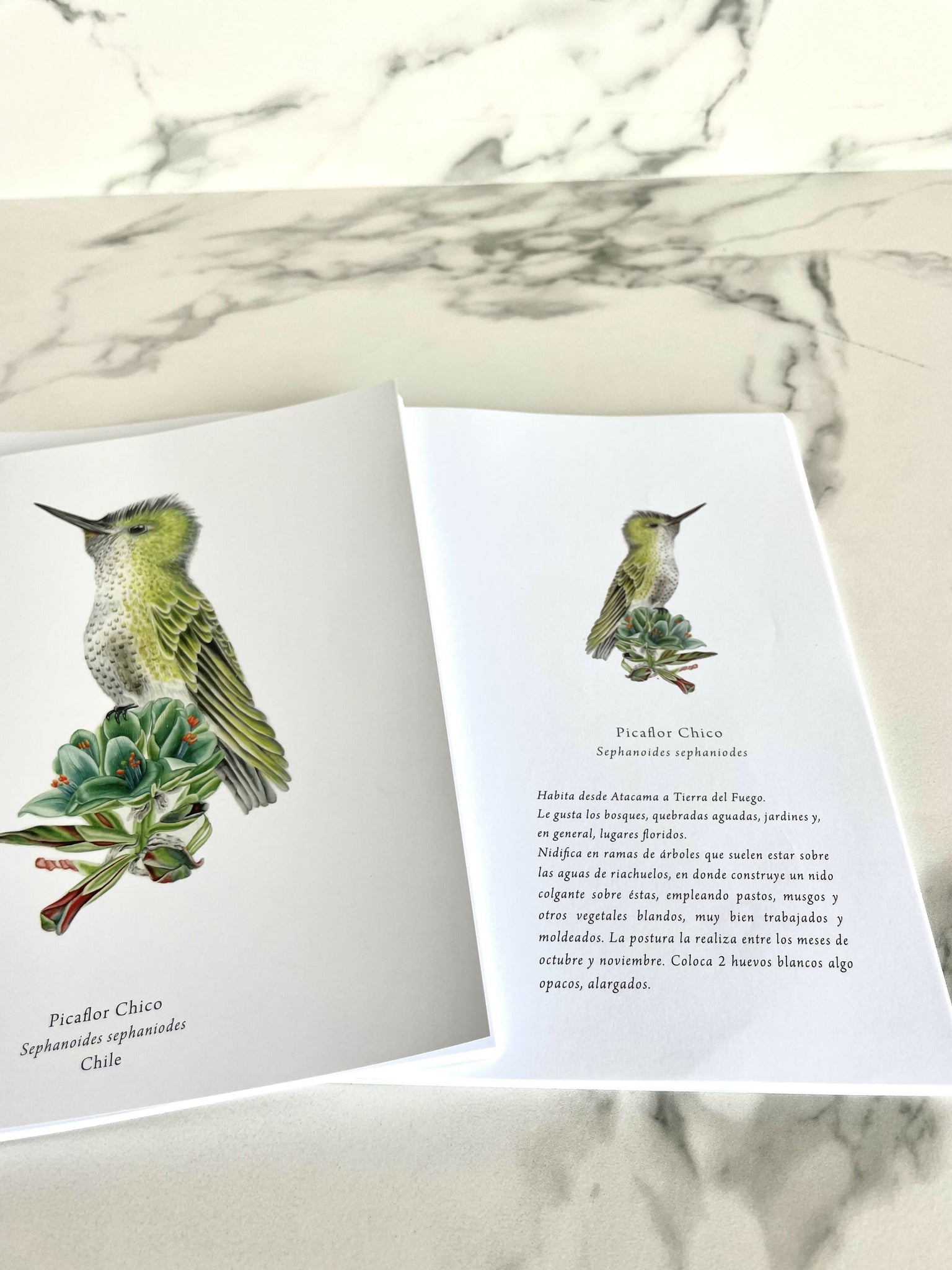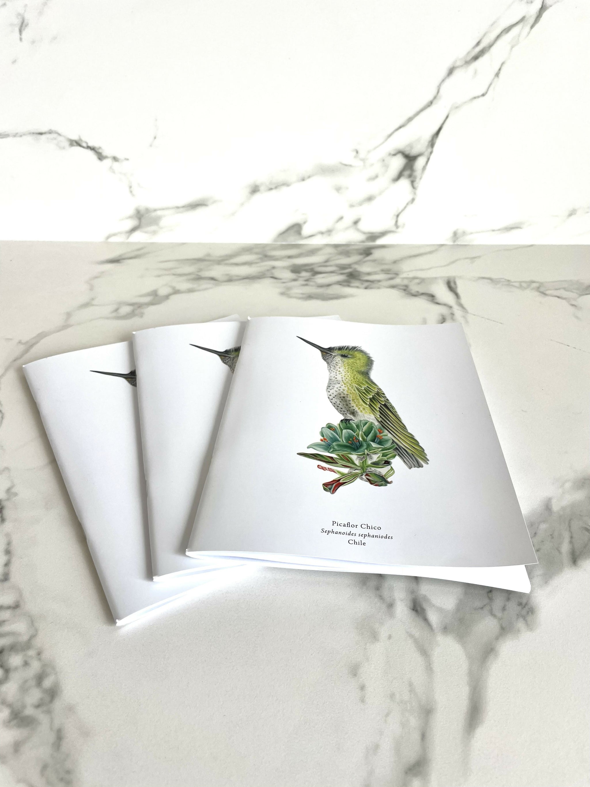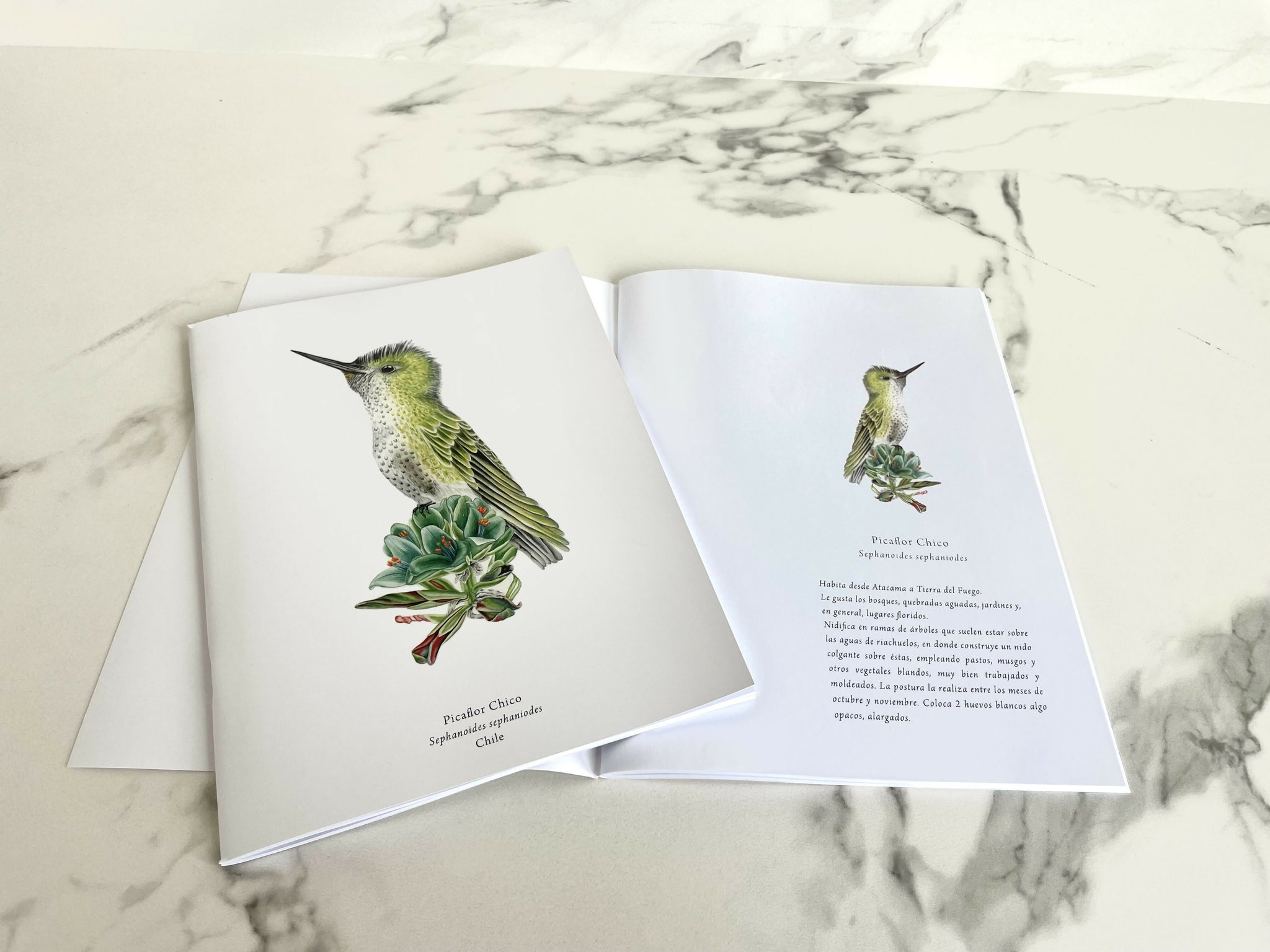 Libretas ilustradas que buscan propagar la flora y fauna chilena y así generar conciencia de las especies que tenemos y su conservación. En su primera hoja podrás encontrar la descripción de cada especie.