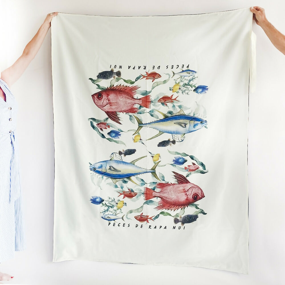 Disfruta cada momento al aire libre con la Manta de Picnic Peces Rapa Nui, diseñada para acompañarte en panoramas inolvidables. Su reverso impermeable aísla la humedad del suelo, permitiéndote relajarte con total comodidad en el pasto, la arena o cualquier superficie.