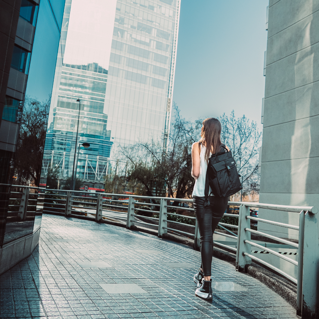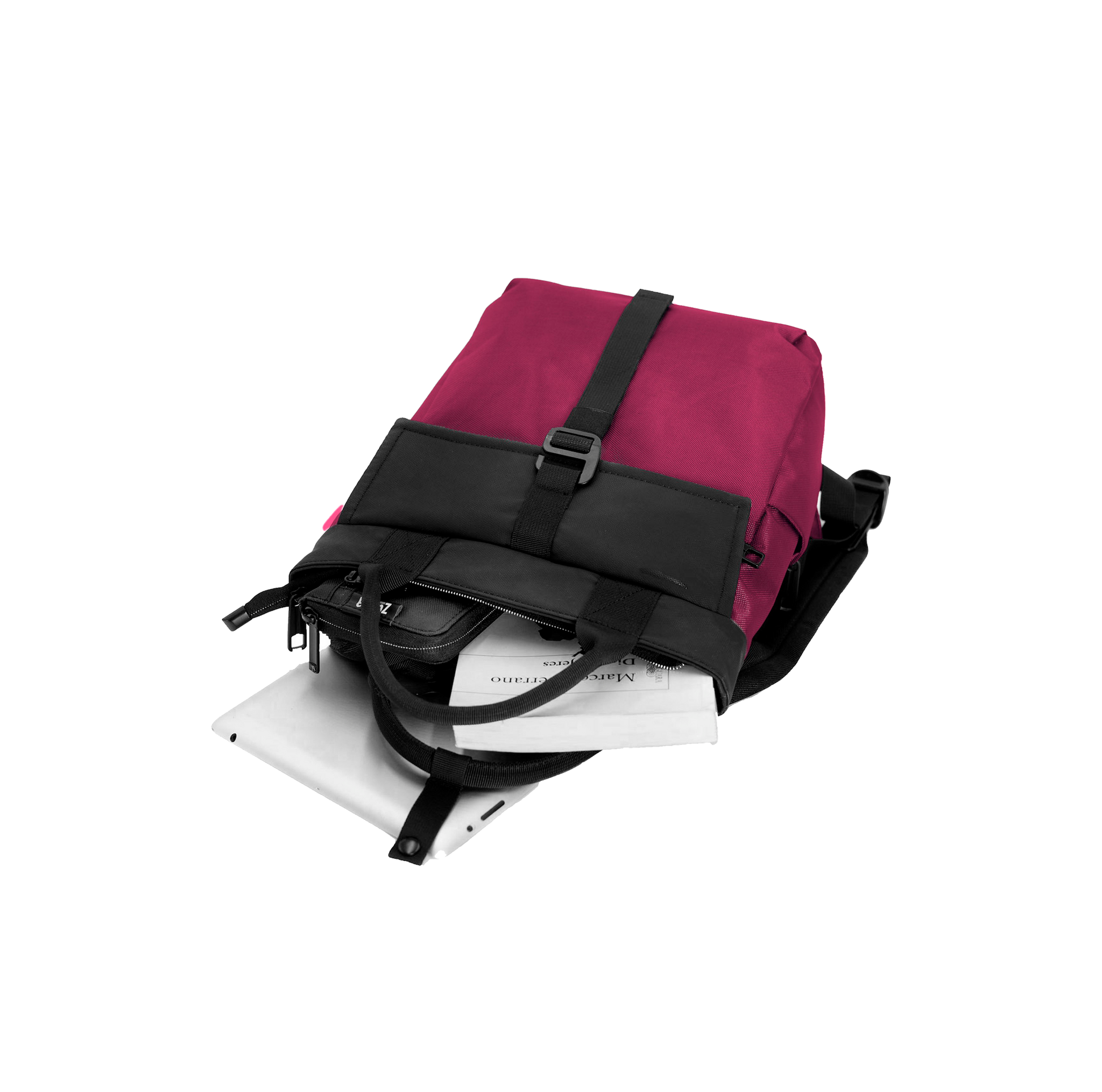 Una mochila con un diseño súper práctico que también puedes usar como bolso de mano, amplio, cómodo y seguro. Repelente al agua, con un compartimiento acolchado para el notebook que te queda pegado a la espalda y fuera del compartimiento principal, con bolsillos laterales para llevar botellas, y un bolsillo frontal grande con cierre.