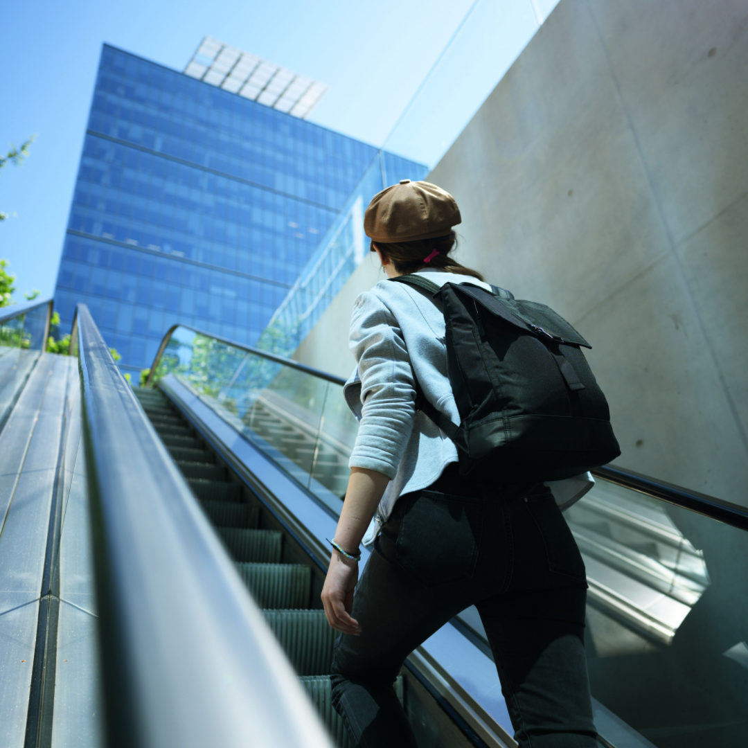 Mochila ejecutiva, confeccionada con telas repentes al agua, con compartimiento para notebook acolchado, un bolsillo frontal y dos bolsillos interiores.