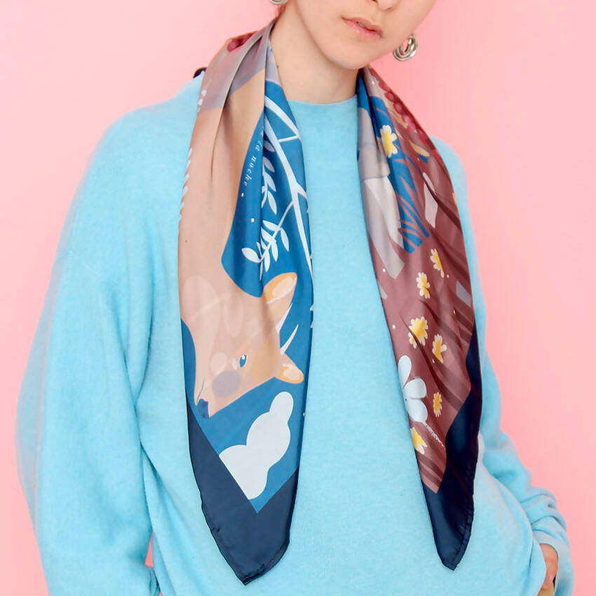 En este elegante Pañuelo, plasmamos la belleza y la magia de los Pudúes en los paisajes del sur de Chile. Resguardados en las noches de los Bosques, especialmente en Chiloé, los Pudúes son integrantes muy importantes y delicados de la fauna andina suramericana.