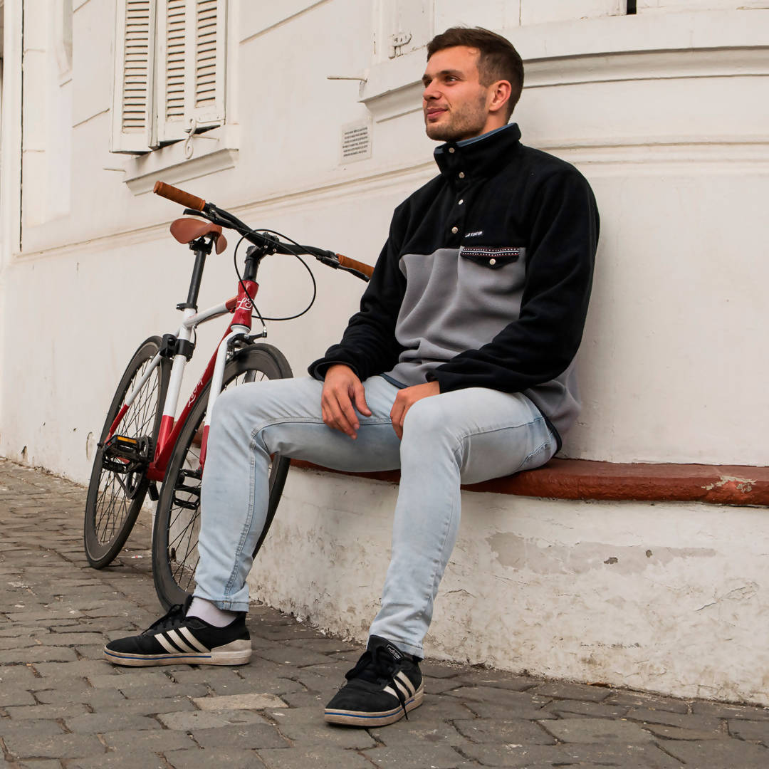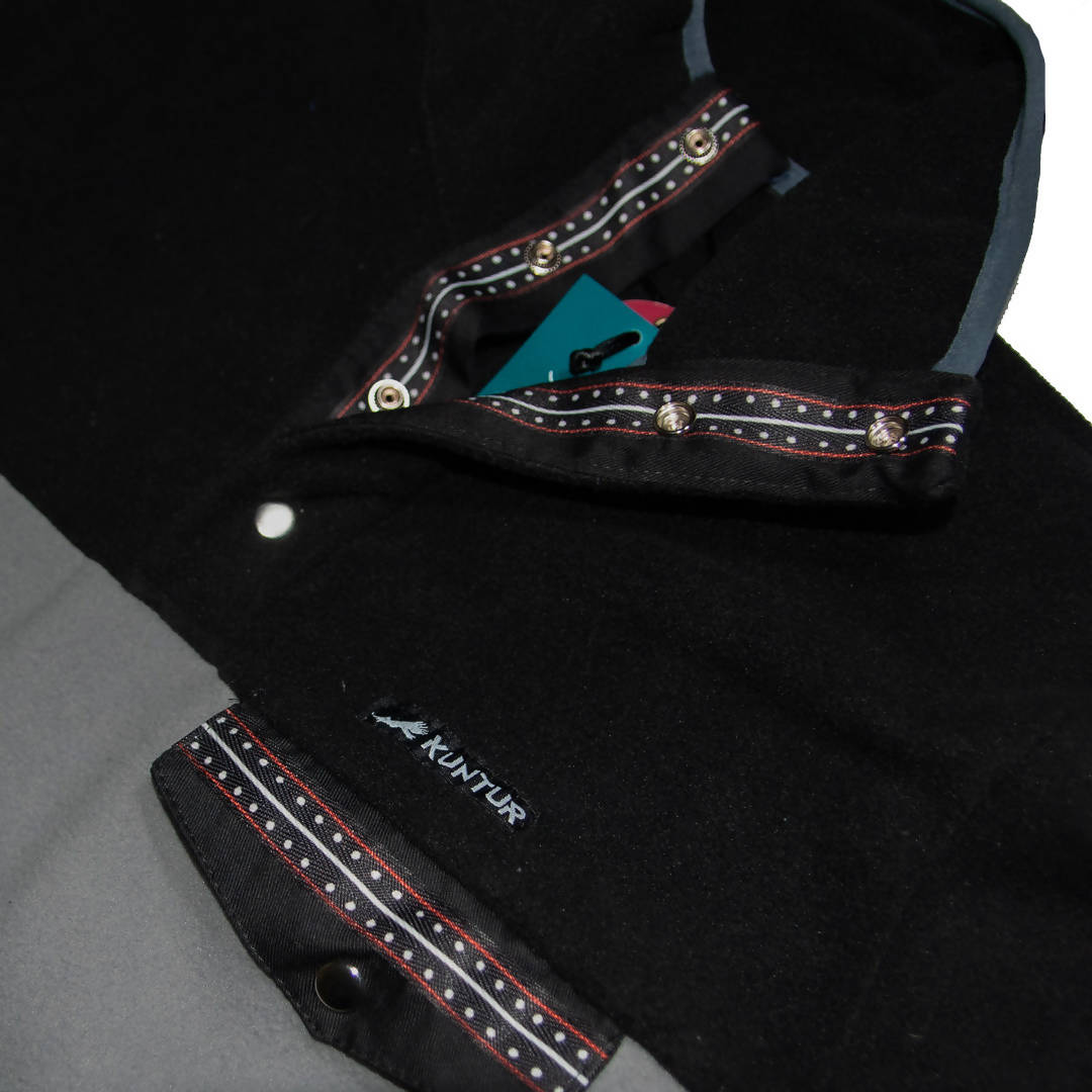 Su diseño, está inspirado en la cultura ancestral de Tierra del Fuego lo que se refleja en los detalles sutiles del bolsillo y cuello.