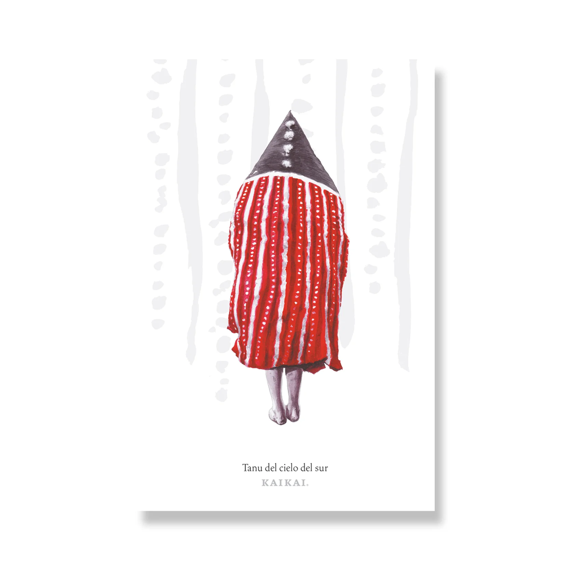 También conocidos como Onas, los Selk’nam, pueblo amerindio del norte de Tierra del Fuego, despertaron la atención de la antropóloga franco-estadounidense Anne Chapman (1922-2010), quien describió su ritual de iniciación a la adultez, conocido como Hain. Para esta colección estudiamos el trabajo de Chapman y las imágenes de la ceremonia captadas por el misionero y fotógrafo Martín Gusinde (1886-1969), para crear detalladas ilustraciones en acuarela de los distintos espíritus que los Selk’nam representaban en el rito.
