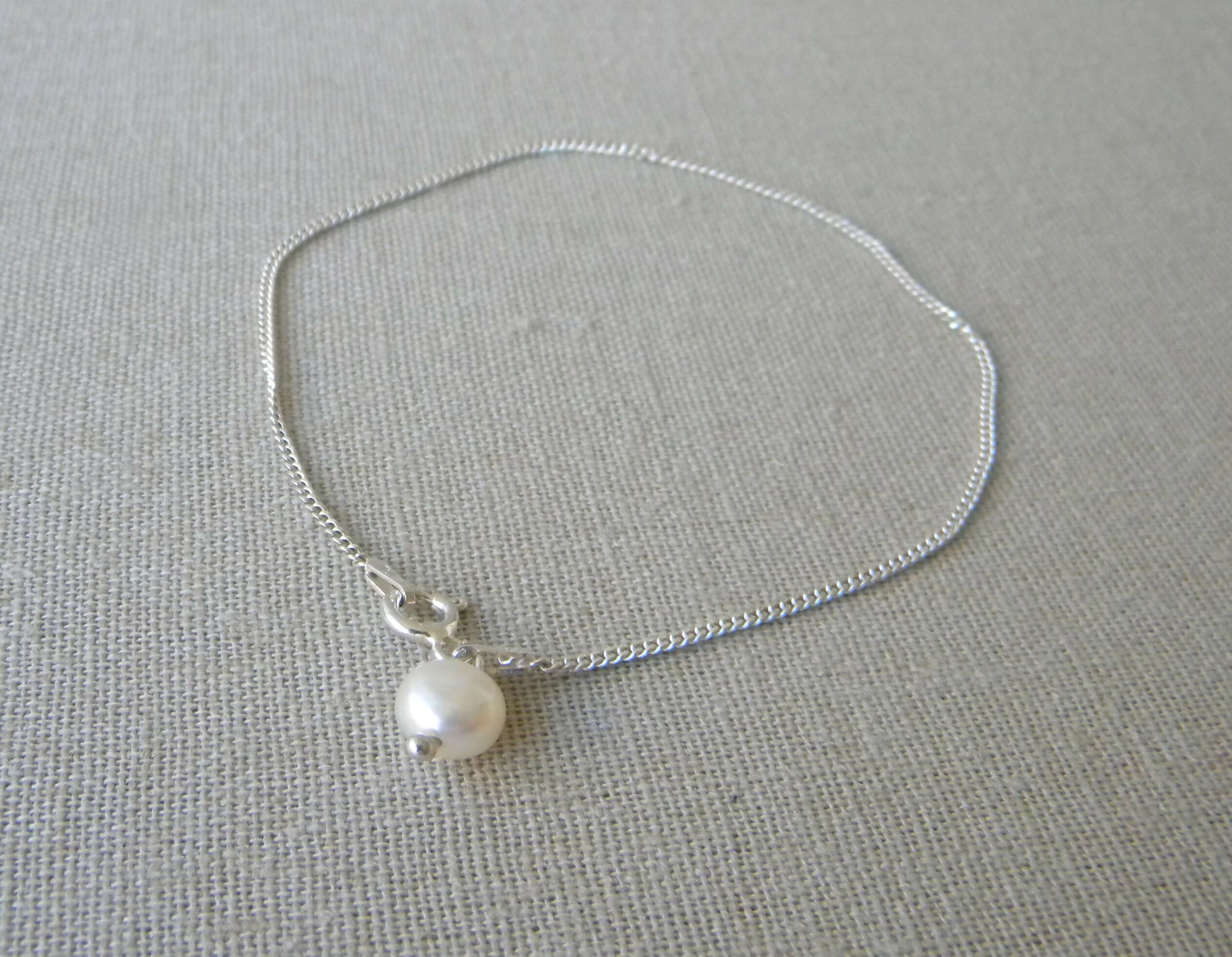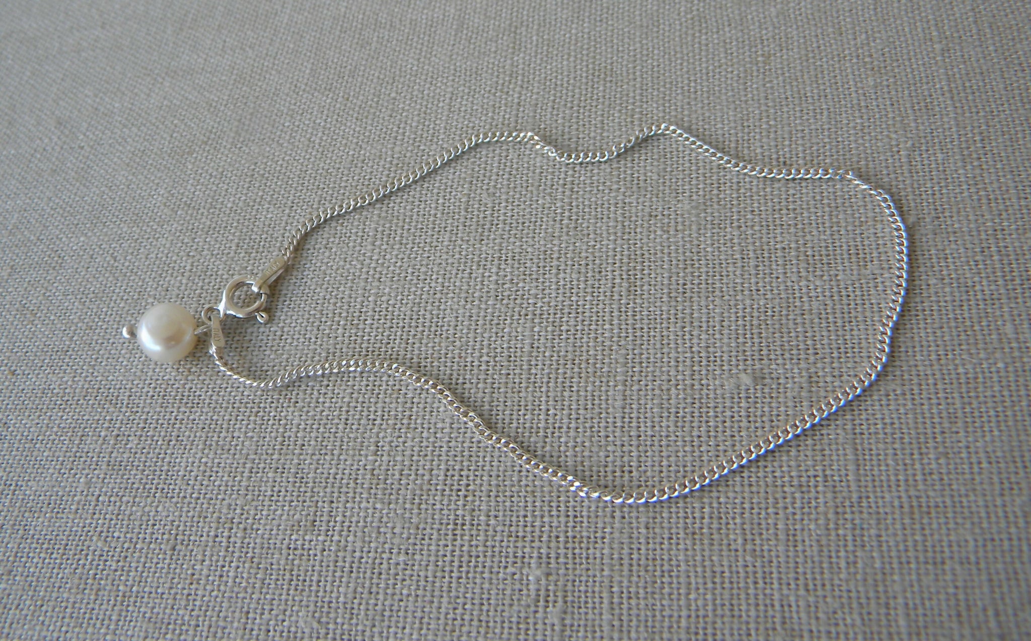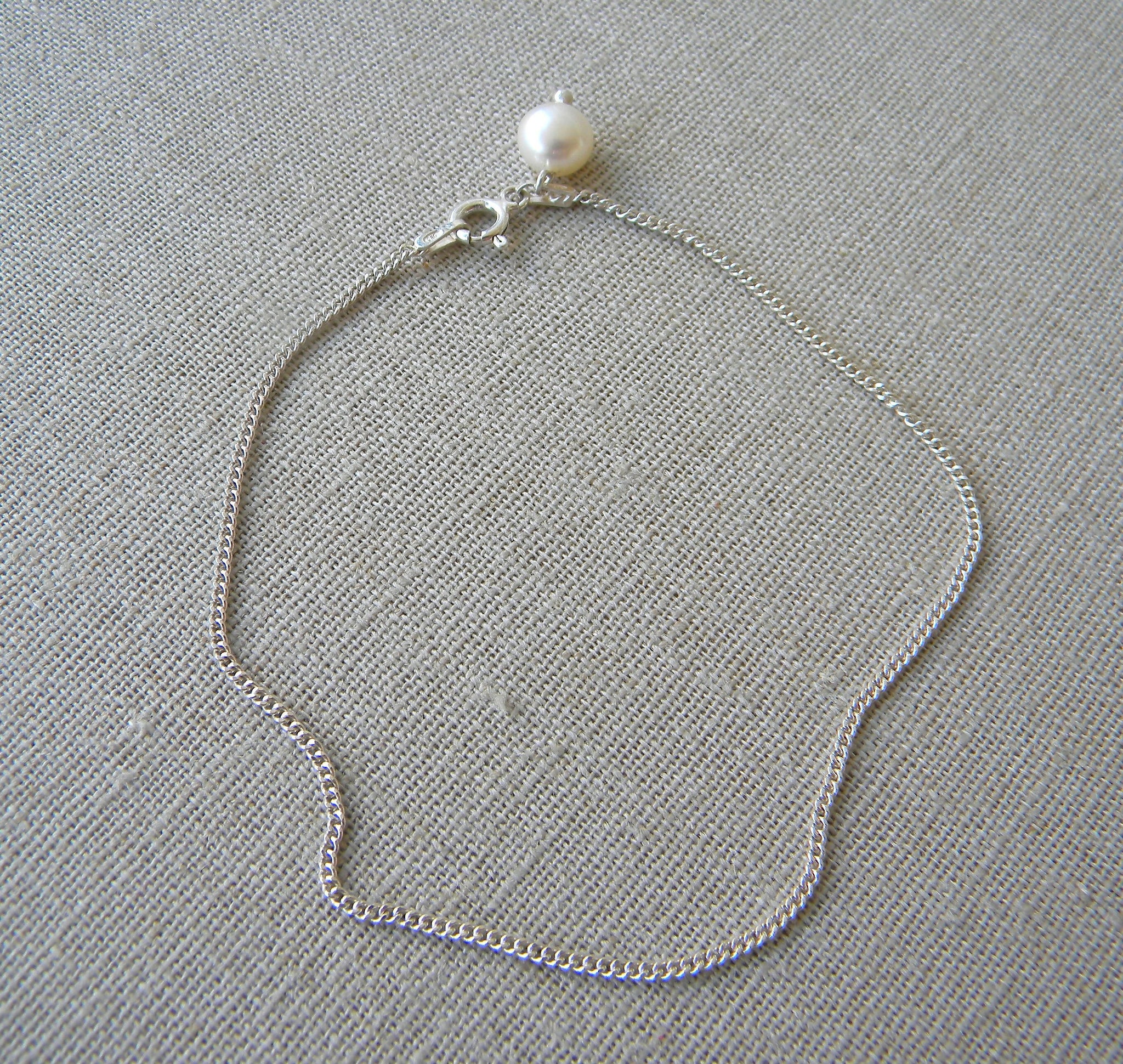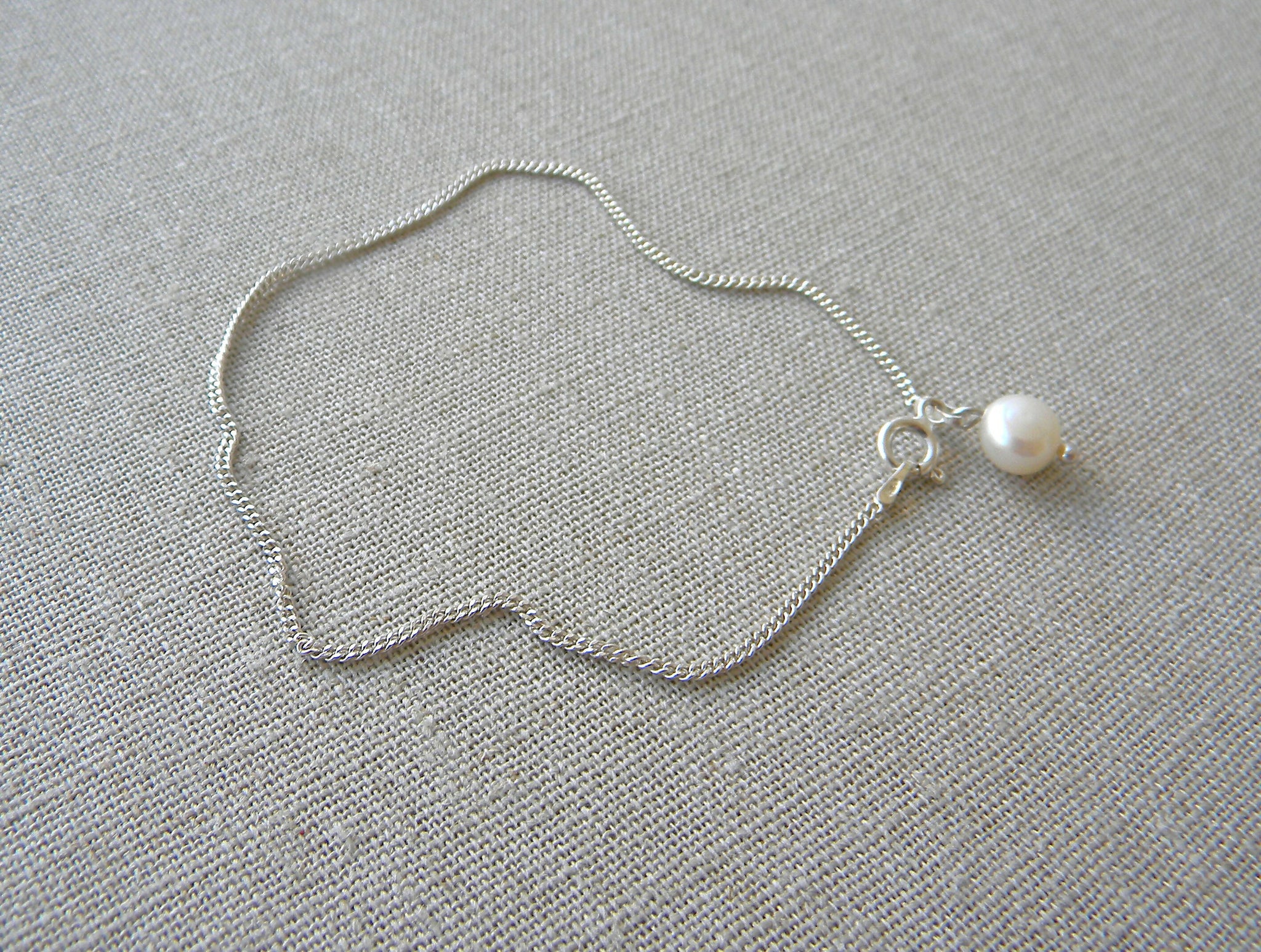 PULSERA FINA PLATA CON PERLA COLGANDO