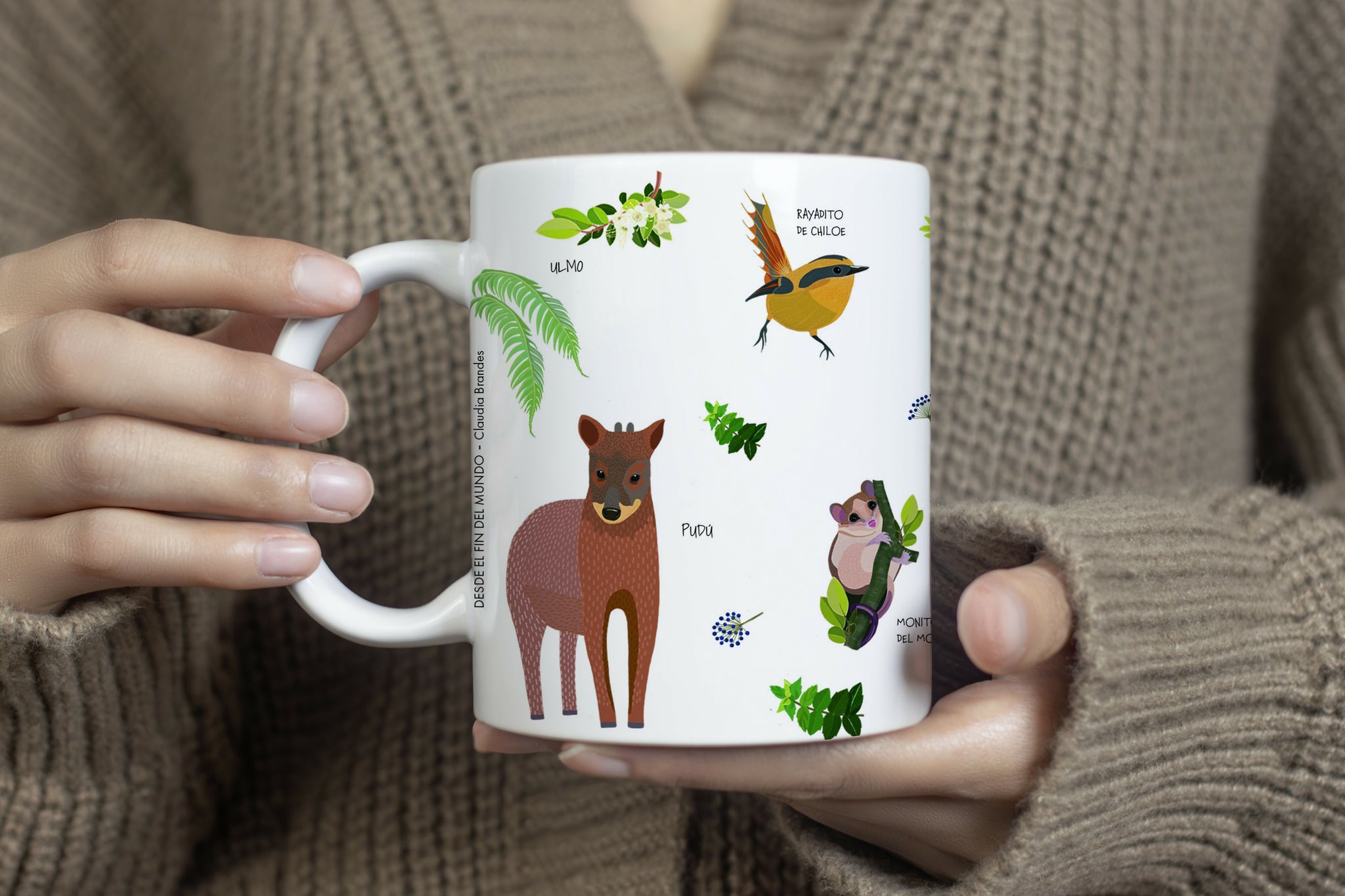 Tenemos una fauna diversa, pero tan desconocida! Y por lo mismo, no nos importa mucho. Estos tazones forman parte de una colección para dar a conocer nuestros animales con todo su encanto, y, en el caso de este, mostrar animales endémicos de Chiloe, muchos de los cuales se encuentran en peligro.