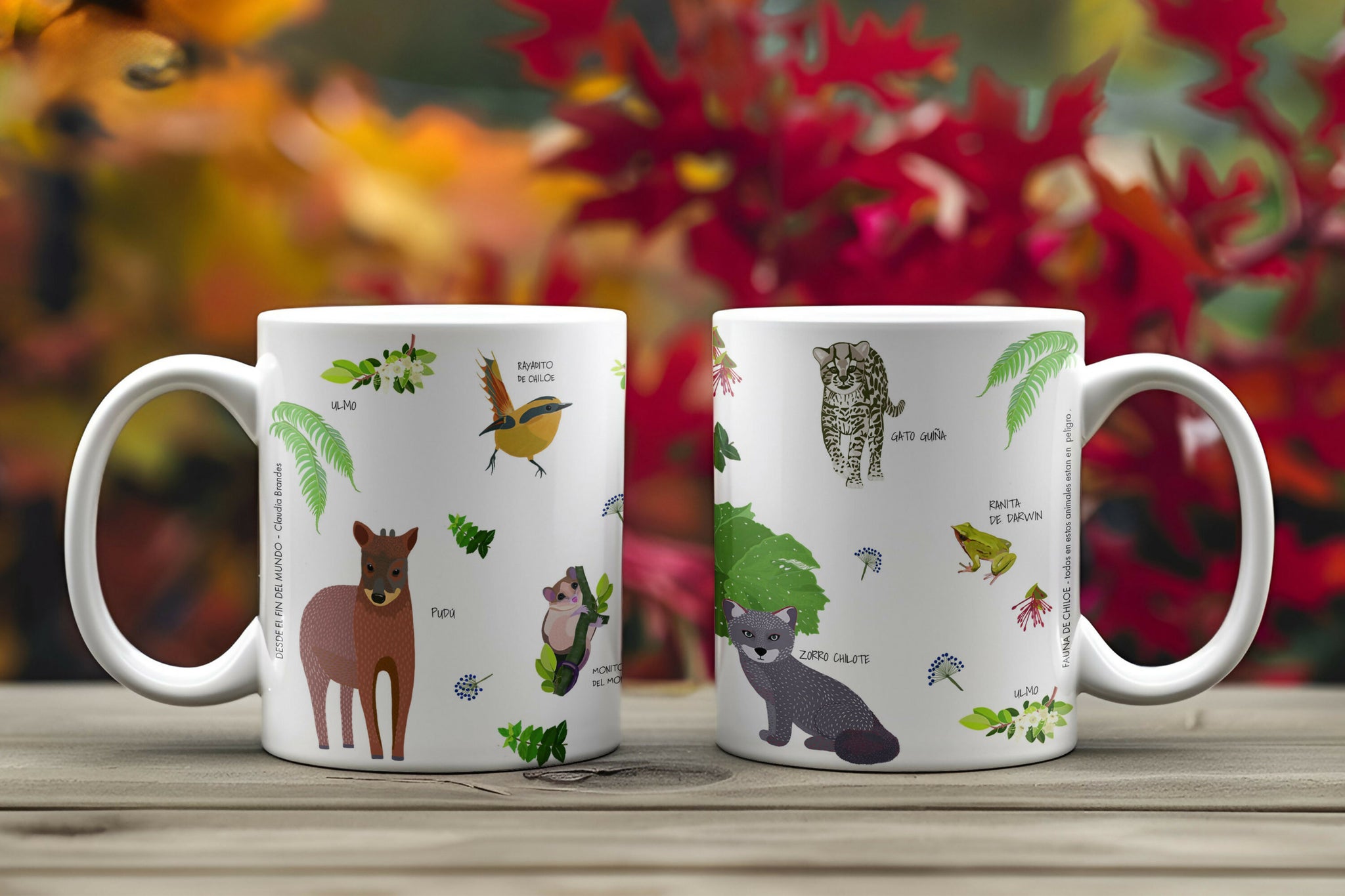 - Ilustraciones exclusivas: Adornados con ilustraciones originales de Claudia Brandes, cada tazón captura la esencia de un animal diferente de Chile, con un estilo único y vibrante.