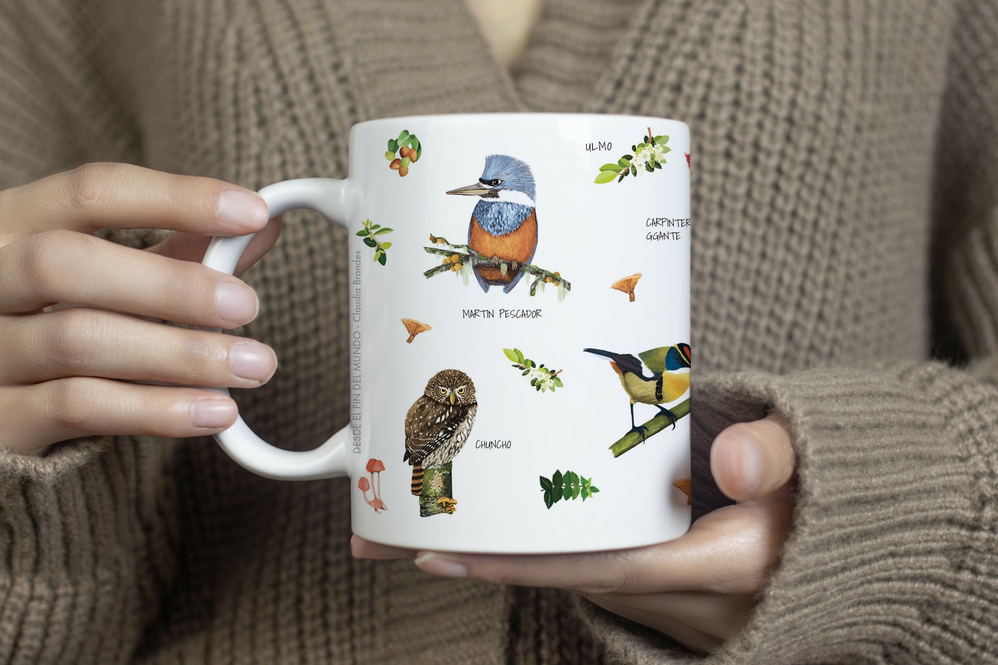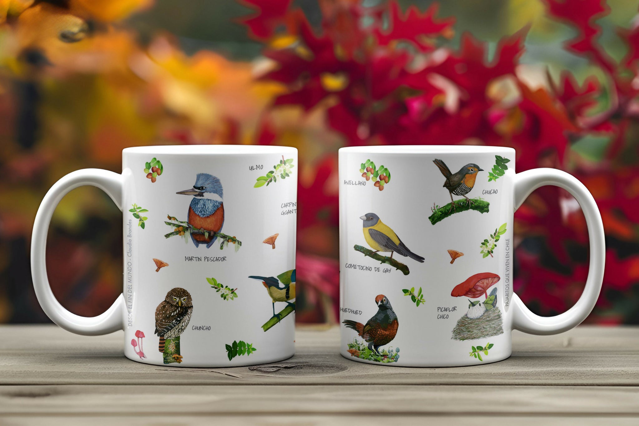 - Ilustraciones exclusivas: Adornados con ilustraciones originales de Claudia Brandes, cada tazón captura la esencia de un ave diferente de Chile, con un estilo único y vibrante.