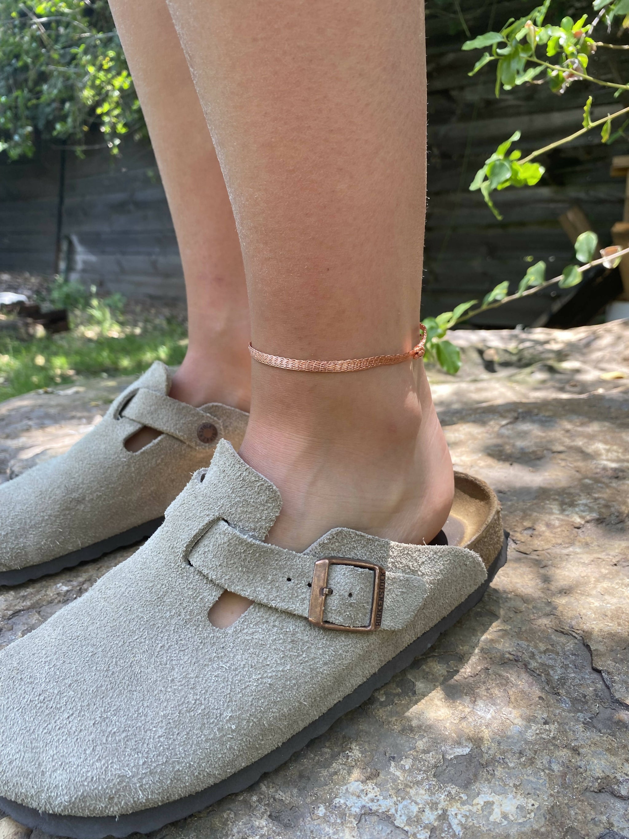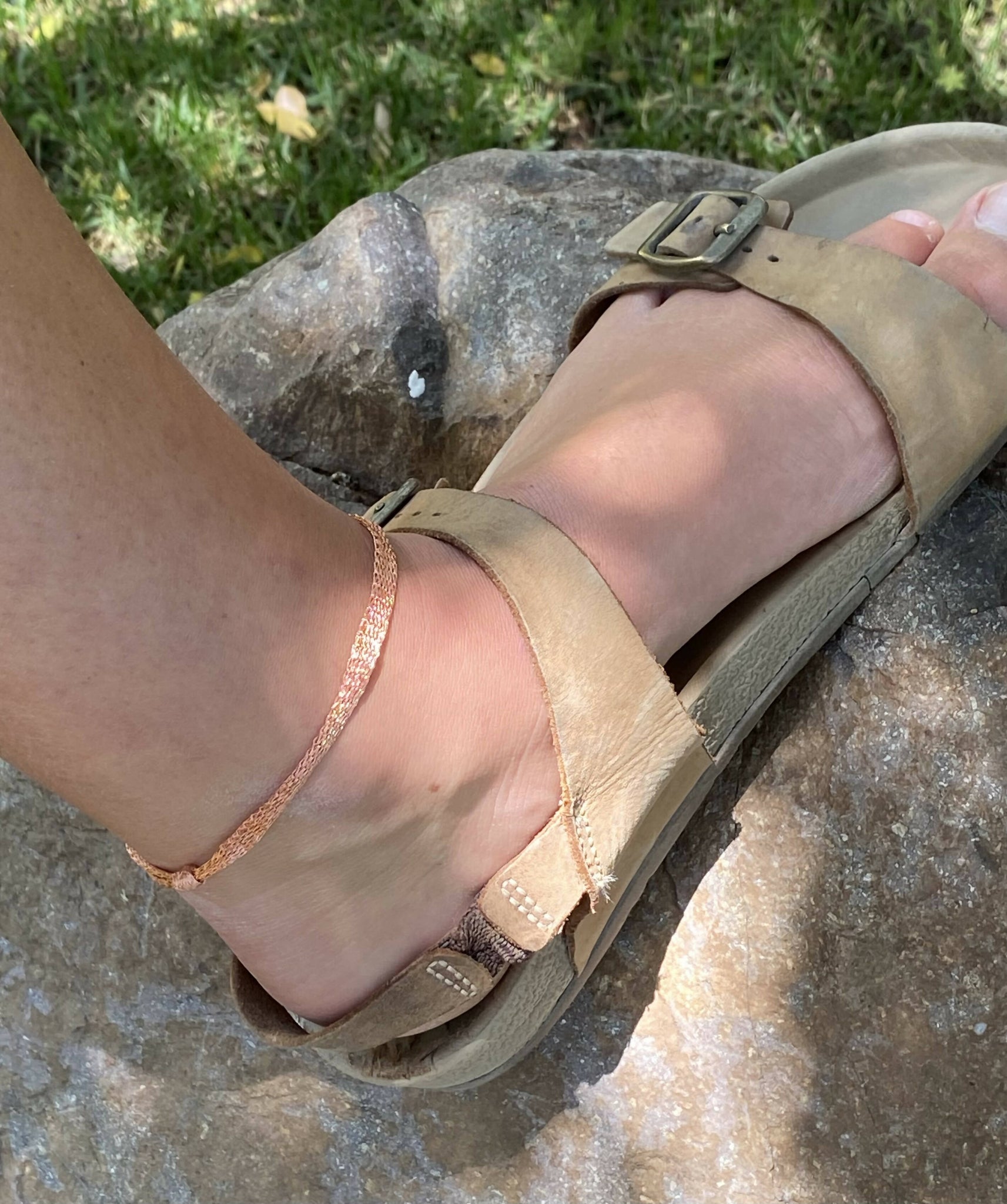 Suave tobillera tejida con filamentos de cobre esmaltado.