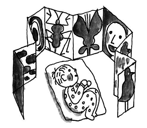 Un nuevo acordeón, ahora dedicado a los más pequeños, ilustrado en pintura negra con manchas de color, para estimular su vista y la curiosidad. En una cara del libro, distintos personajes vienen a saludar dulcemente al bebé despertando su olfato, oído, vista y tacto. Y en la otra cara, un espectacular paisaje con los mismos animales, más la cariñosa mamá abrazan al bebé celebrando su llegada al mundo.