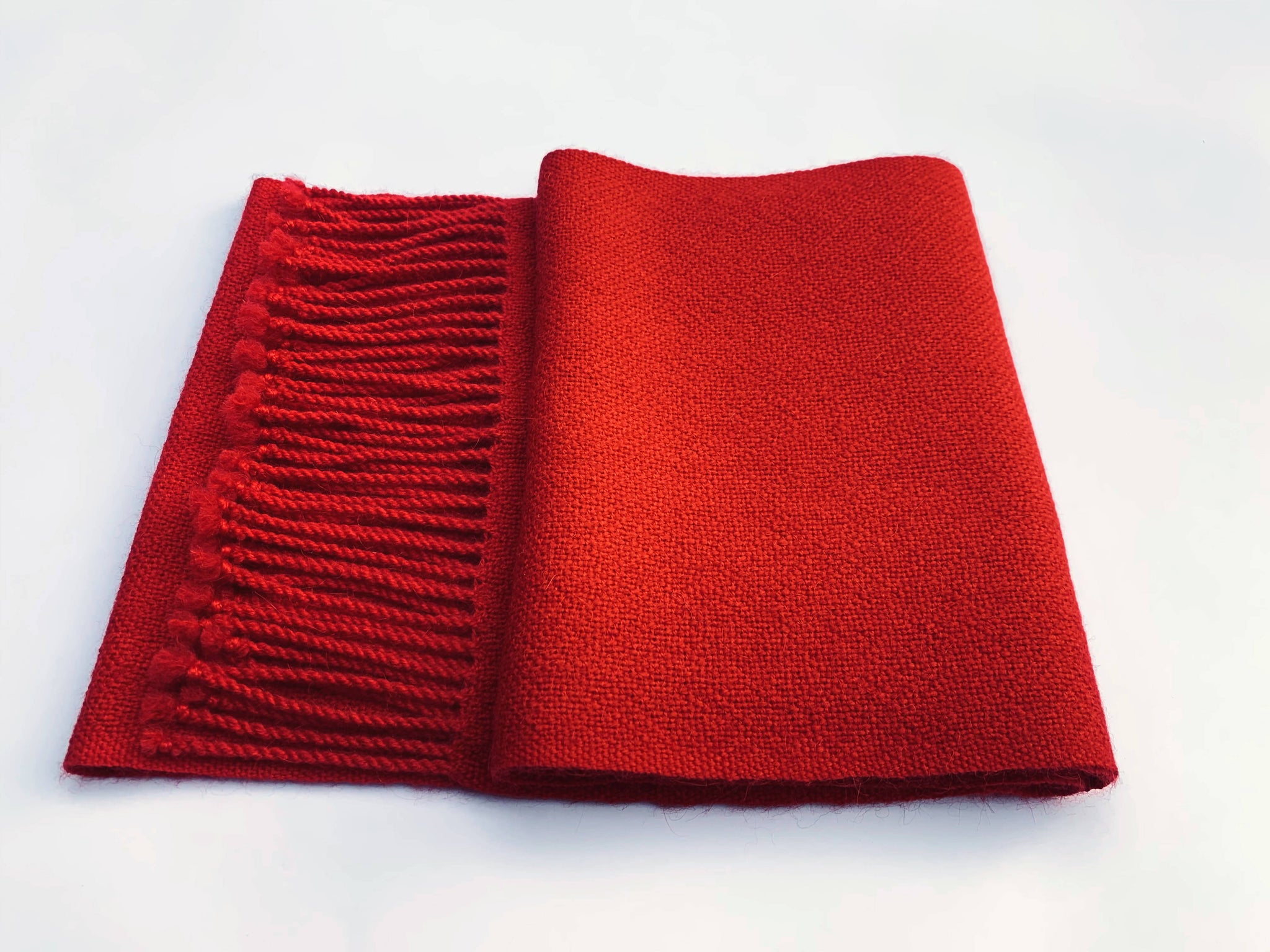 Preciosa Bufanda de lana 100% Alpaca sin mezcla, de color rojo, tejida y teñida a mano, especial para iluminar una tenida.