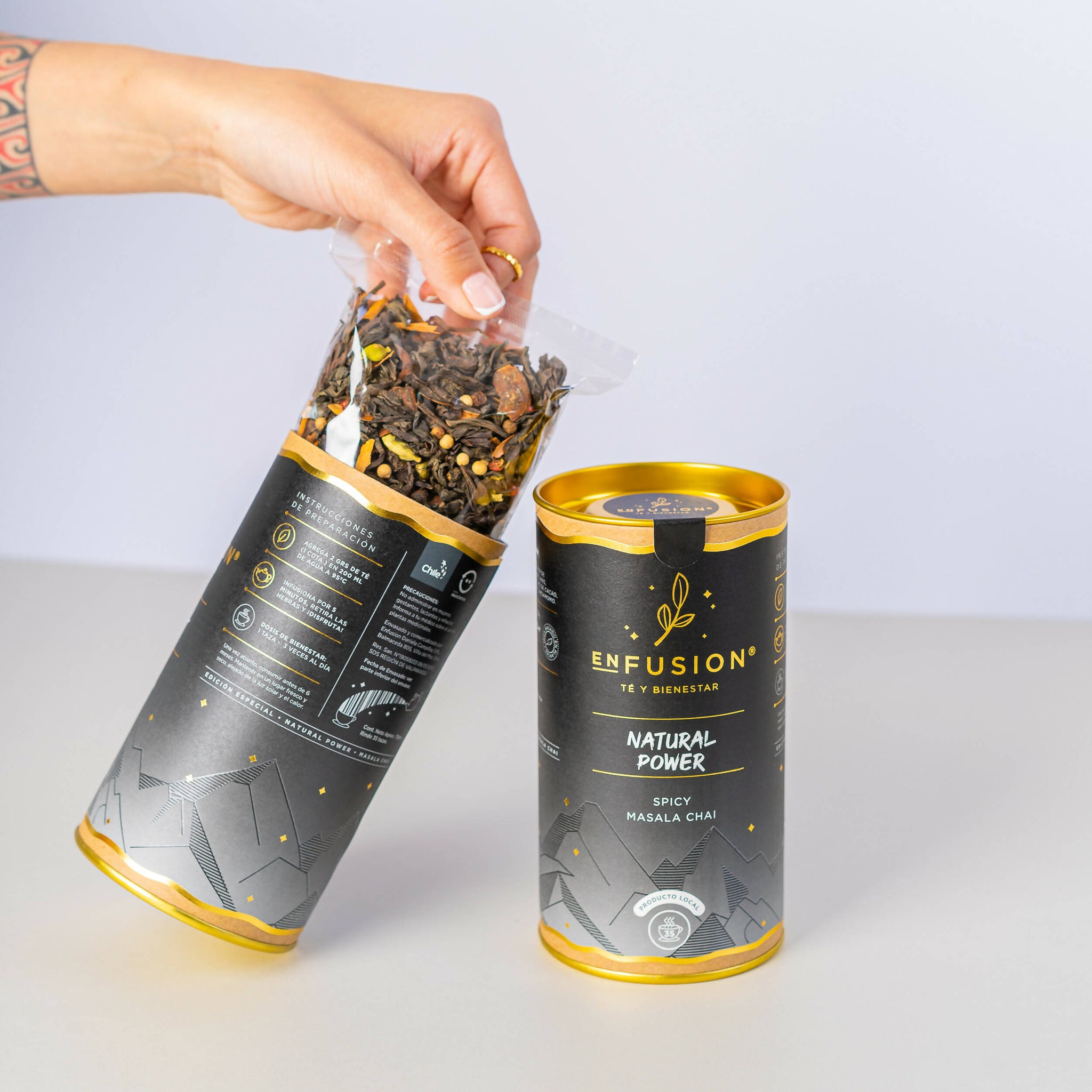 Spicy Masala Chai. Natural Power es nuestra nueva versión de esta mezcla milenaria amada♥con toques más picantes (sutilmente) y dulces notas aromáticas a cacao. Es una infusión 100% natural que viene a elevar nuestra energía de manera saludable! Es una infusión perfecta para comenzar el día, para mezclar con bebidas vegetales y disfrutar en la montaña!
