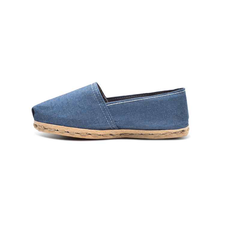 Esta alpargata de lona mezclilla está hecha con materiales 100% naturales, incluyendo una suela de yute. Su diseño tradicional y comodidad la hacen ideal para cualquier ocasión. ¡Una opción sostenible y cómoda para tus pies!