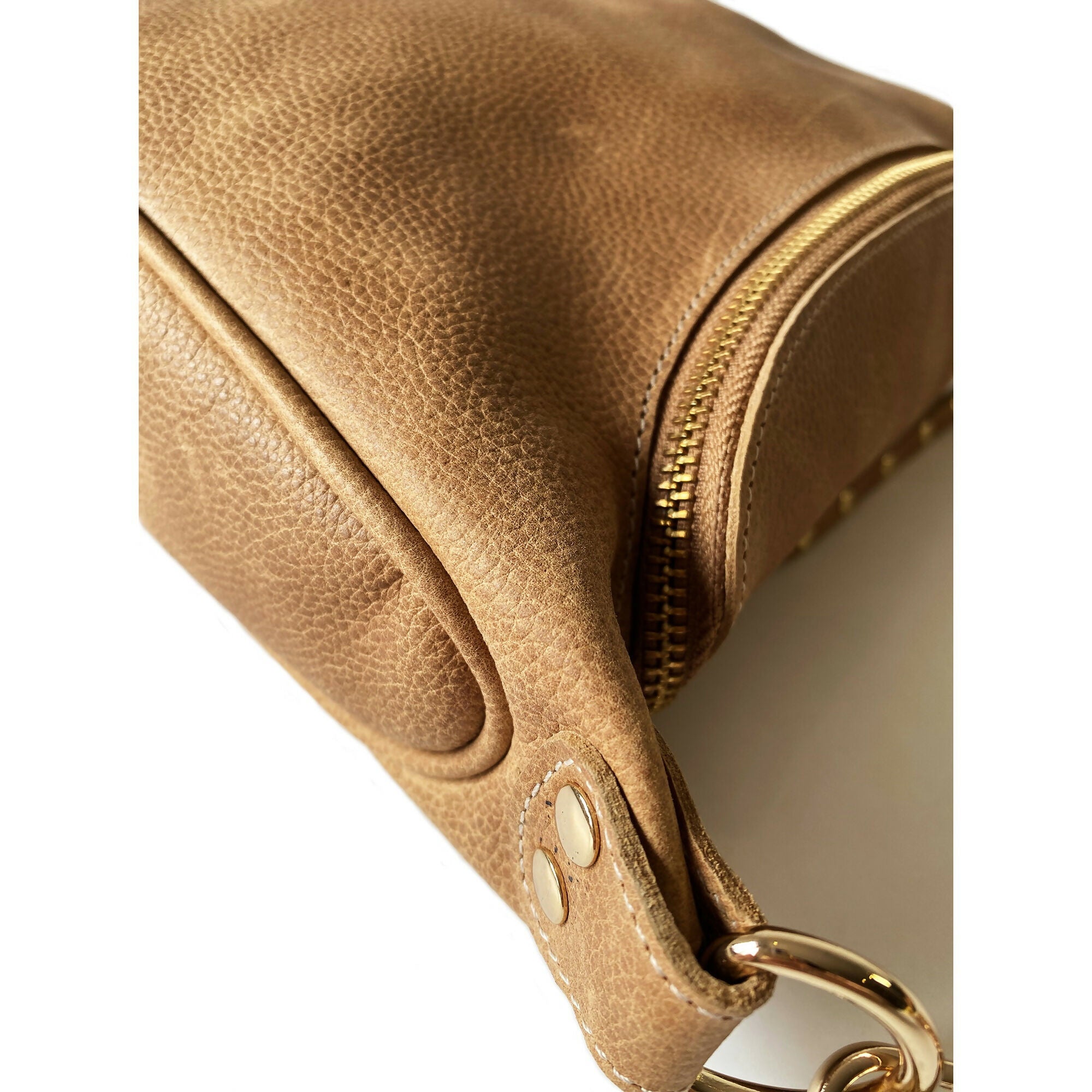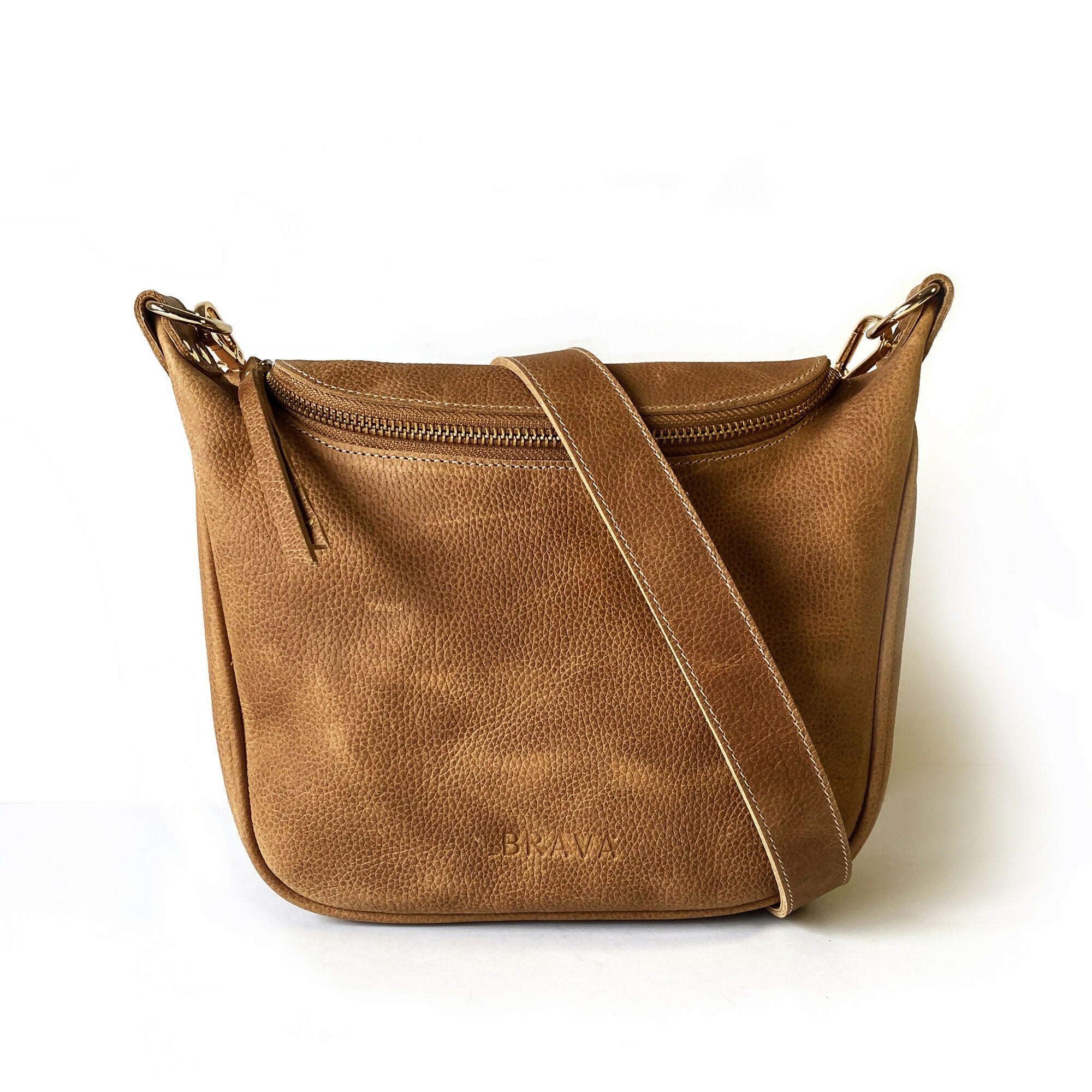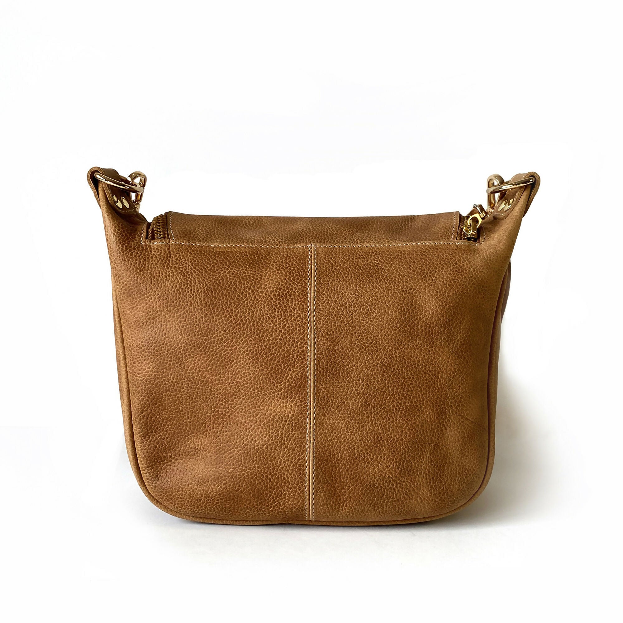 Nuestra nueva bandolera de cuero está perfecta para llevar lo justo y un poco más. Súper práctica y compacta, su manilla larga permite llevarla cruzada con un herraje que sirve para ajustarla a la medida que tú necesitas.
