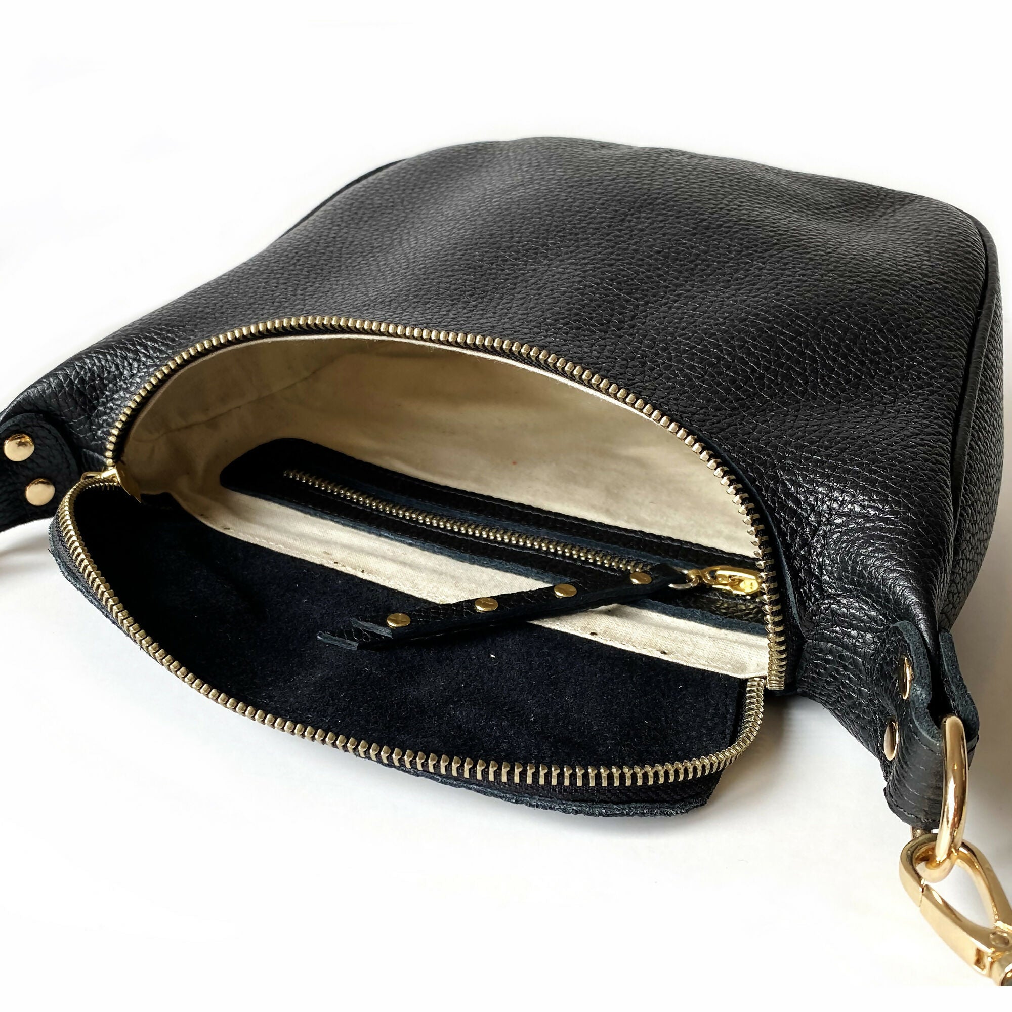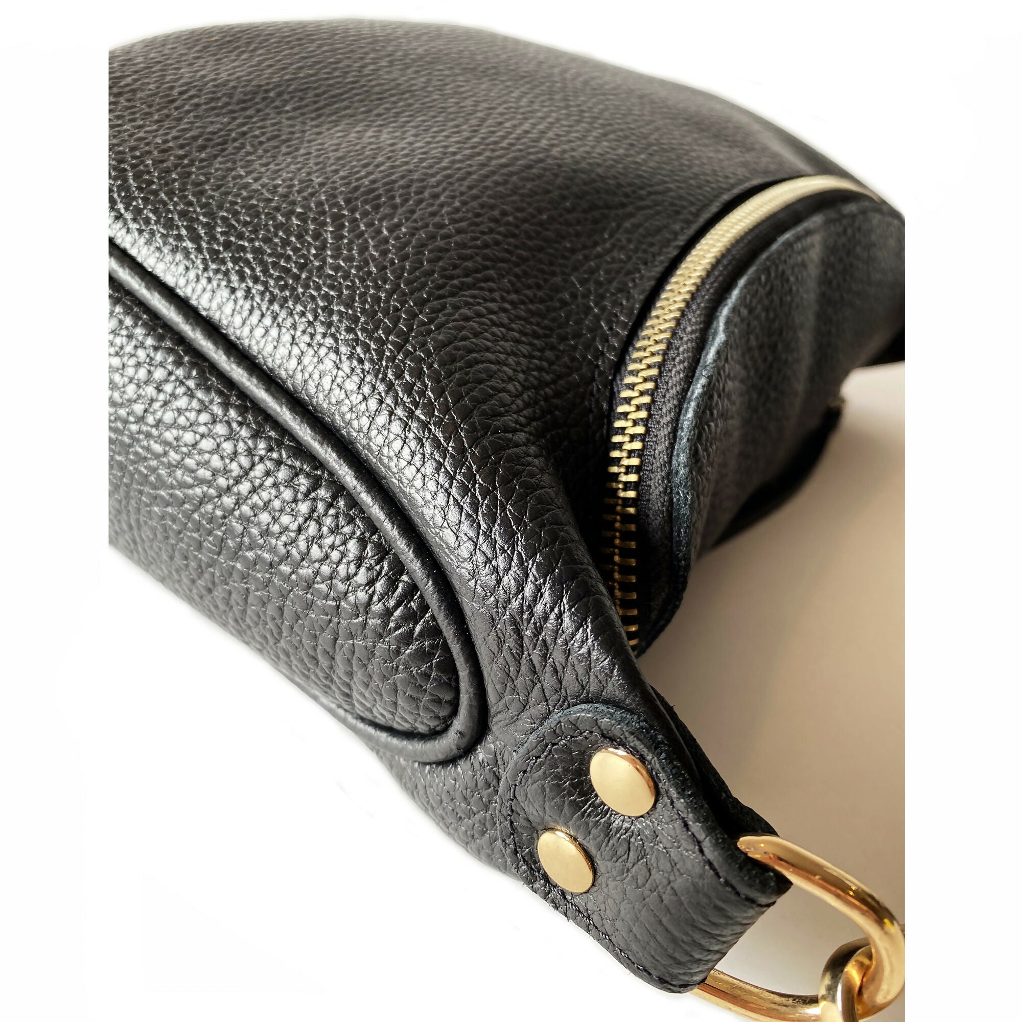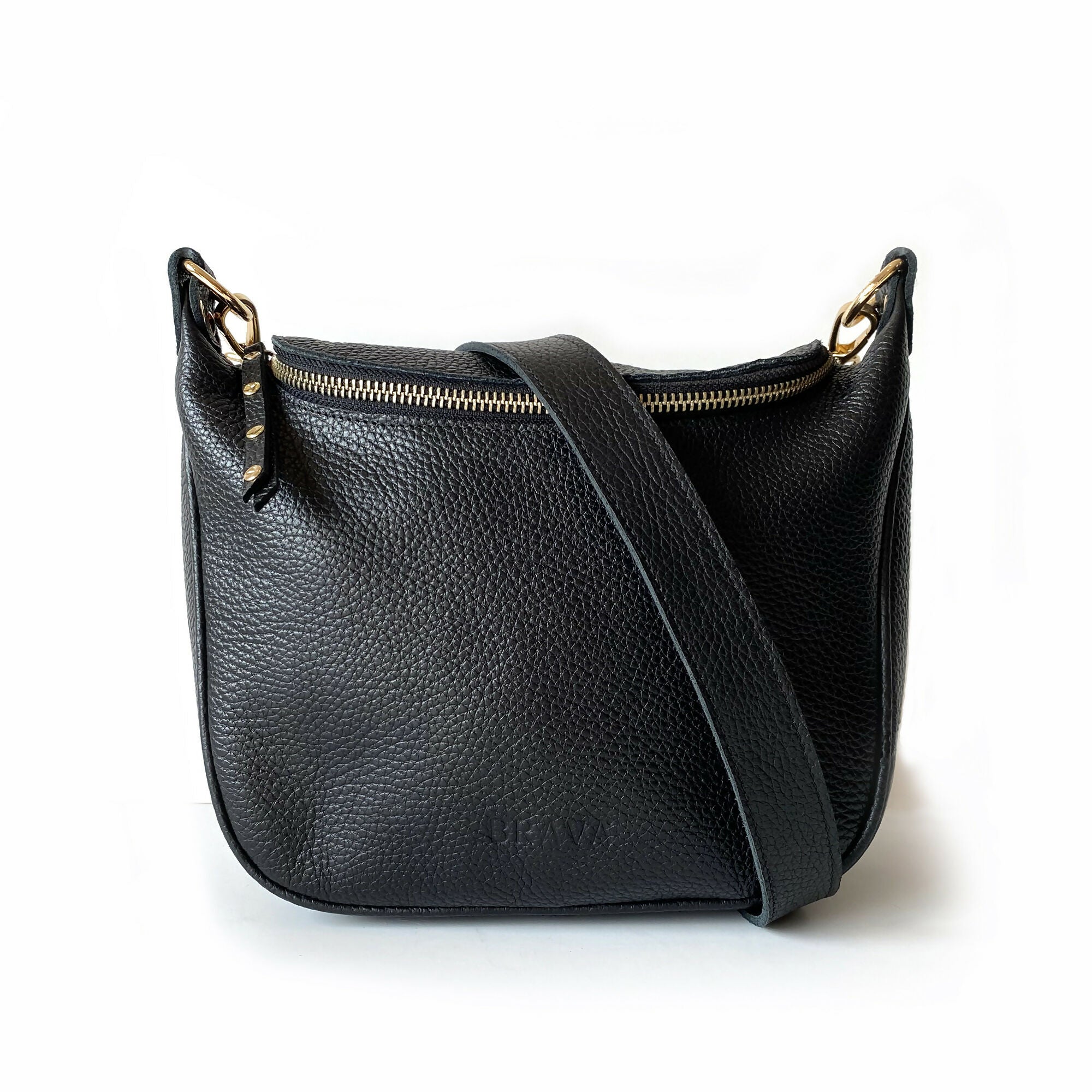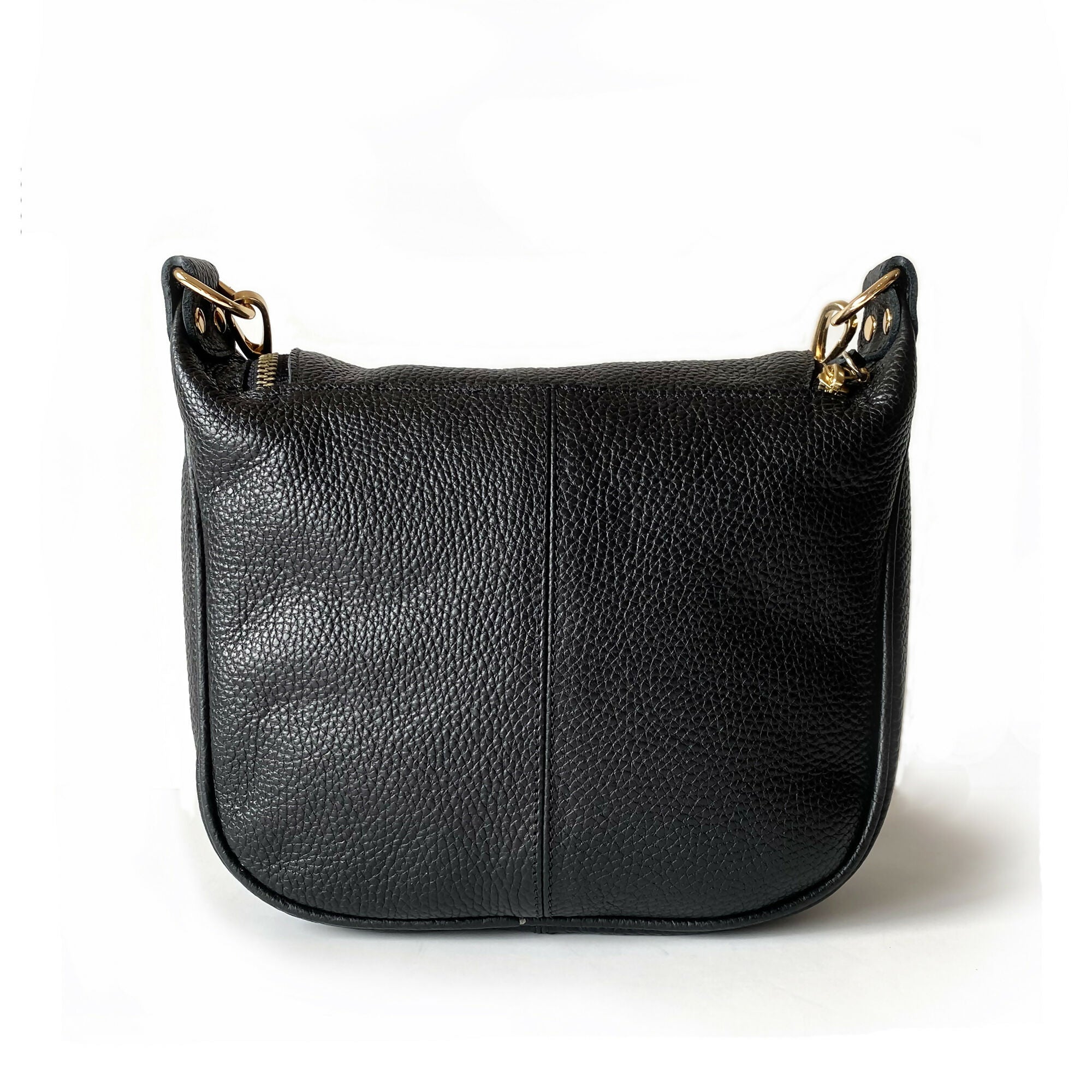 Nuestra nueva bandolera de cuero está perfecta para llevar lo justo y un poco más. Súper práctica y compacta, su manilla larga permite llevarla cruzada con un herraje que sirve para ajustarla a la medida que tú necesitas.
