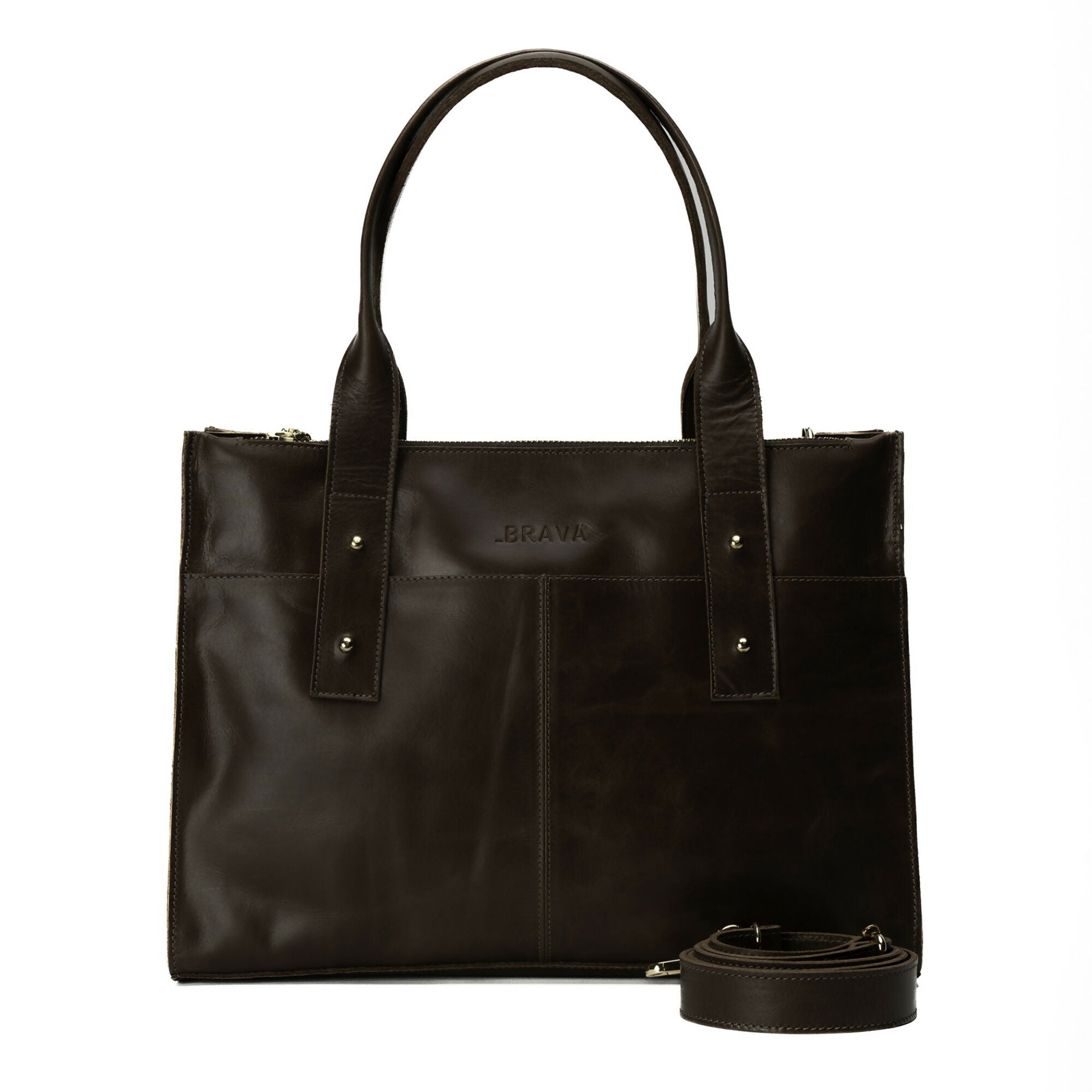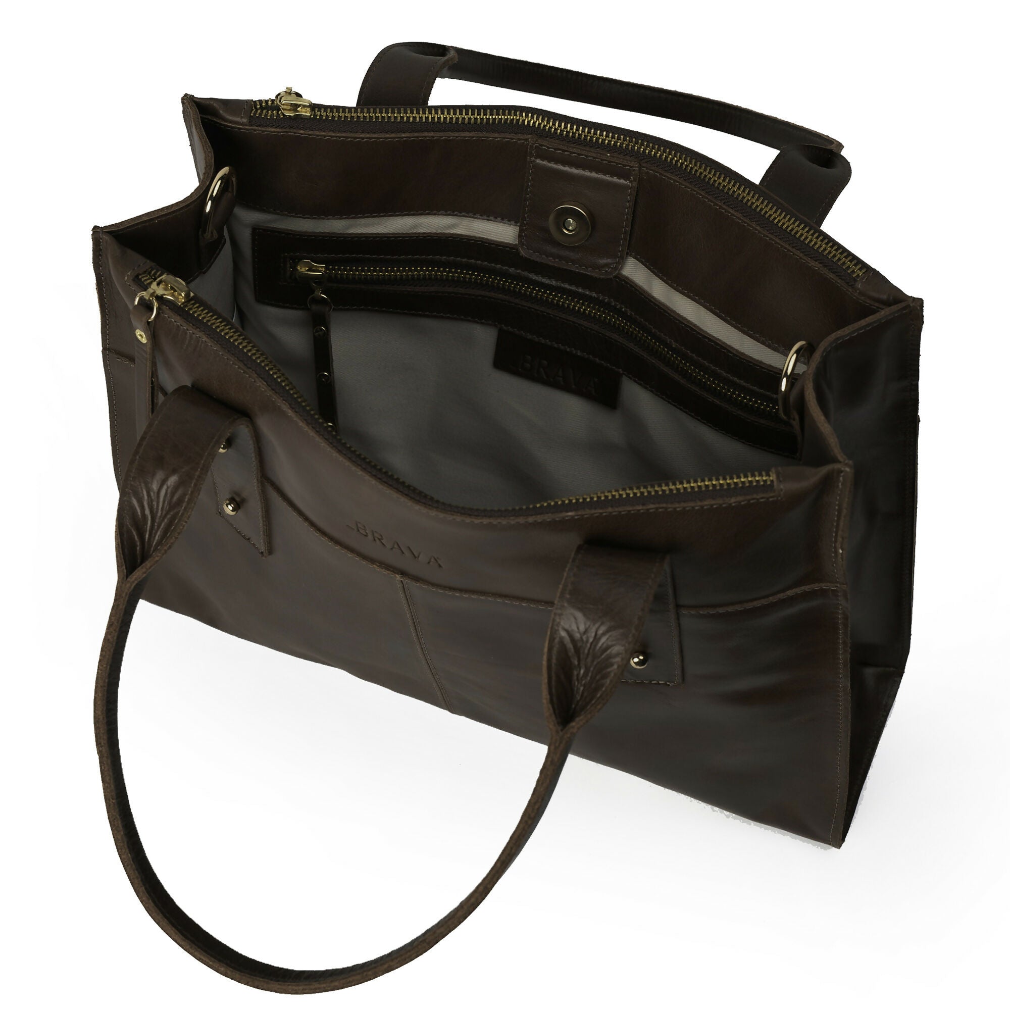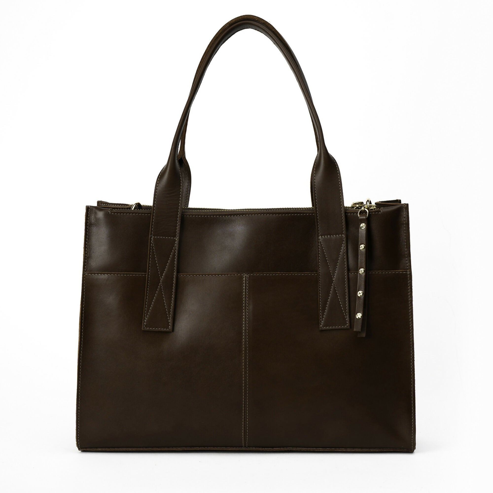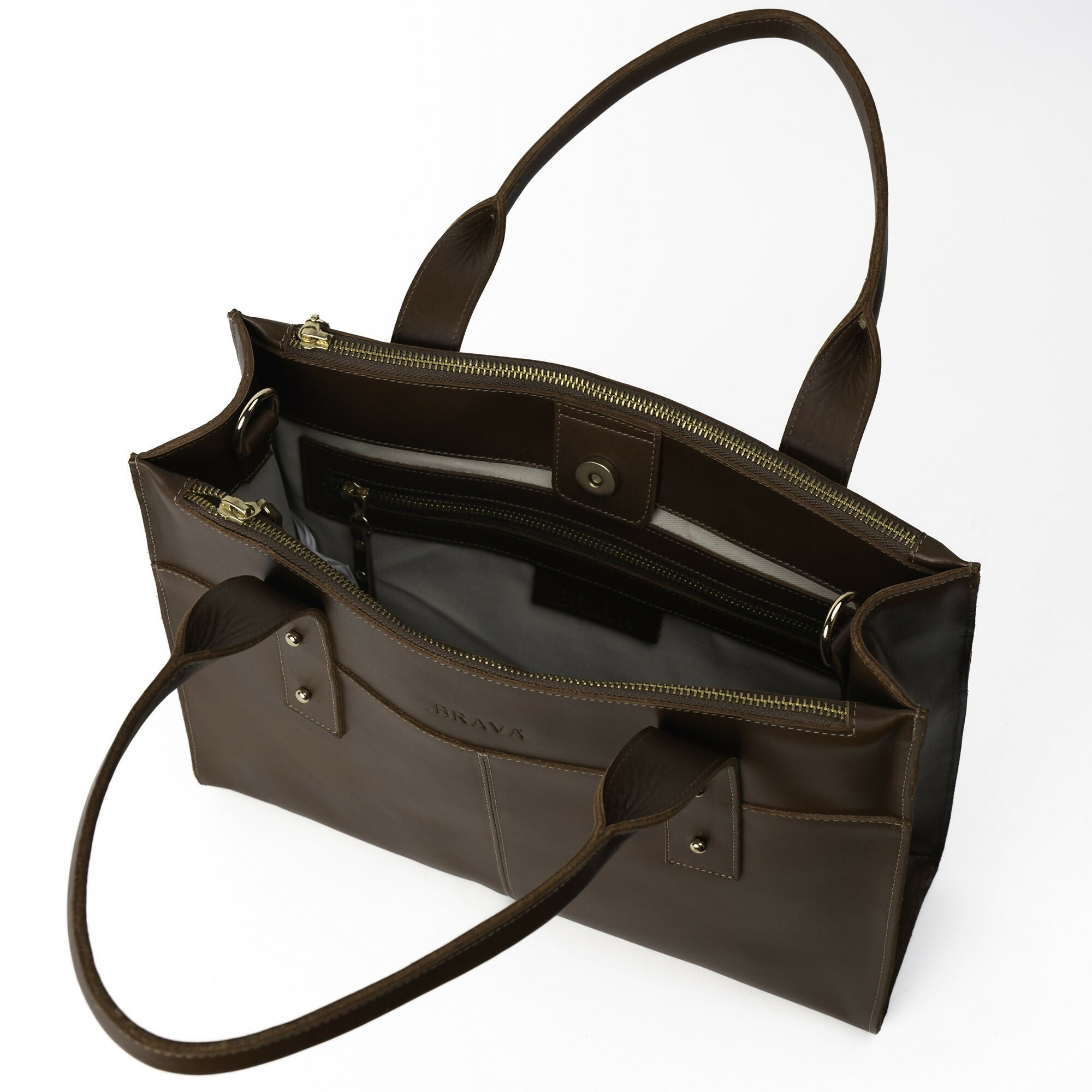 Su gran apertura principal facilita el acceso, mientras que los dos bolsillos laterales con cierre metálico y el bolsillo interior forrado en gabardina ofrecen espacio organizado para tus esenciales. Diseñada para llevarse de mano o al hombro, este accesorio es la elección perfecta para un estilo profesional y sofisticado.