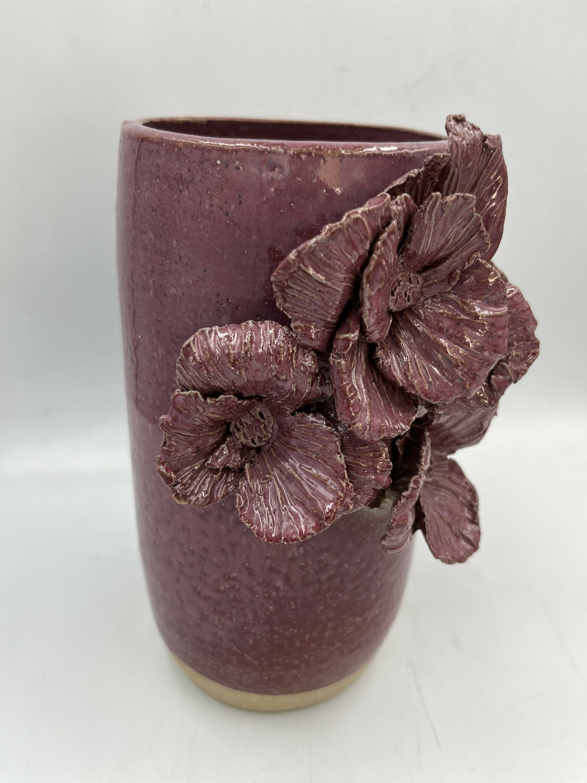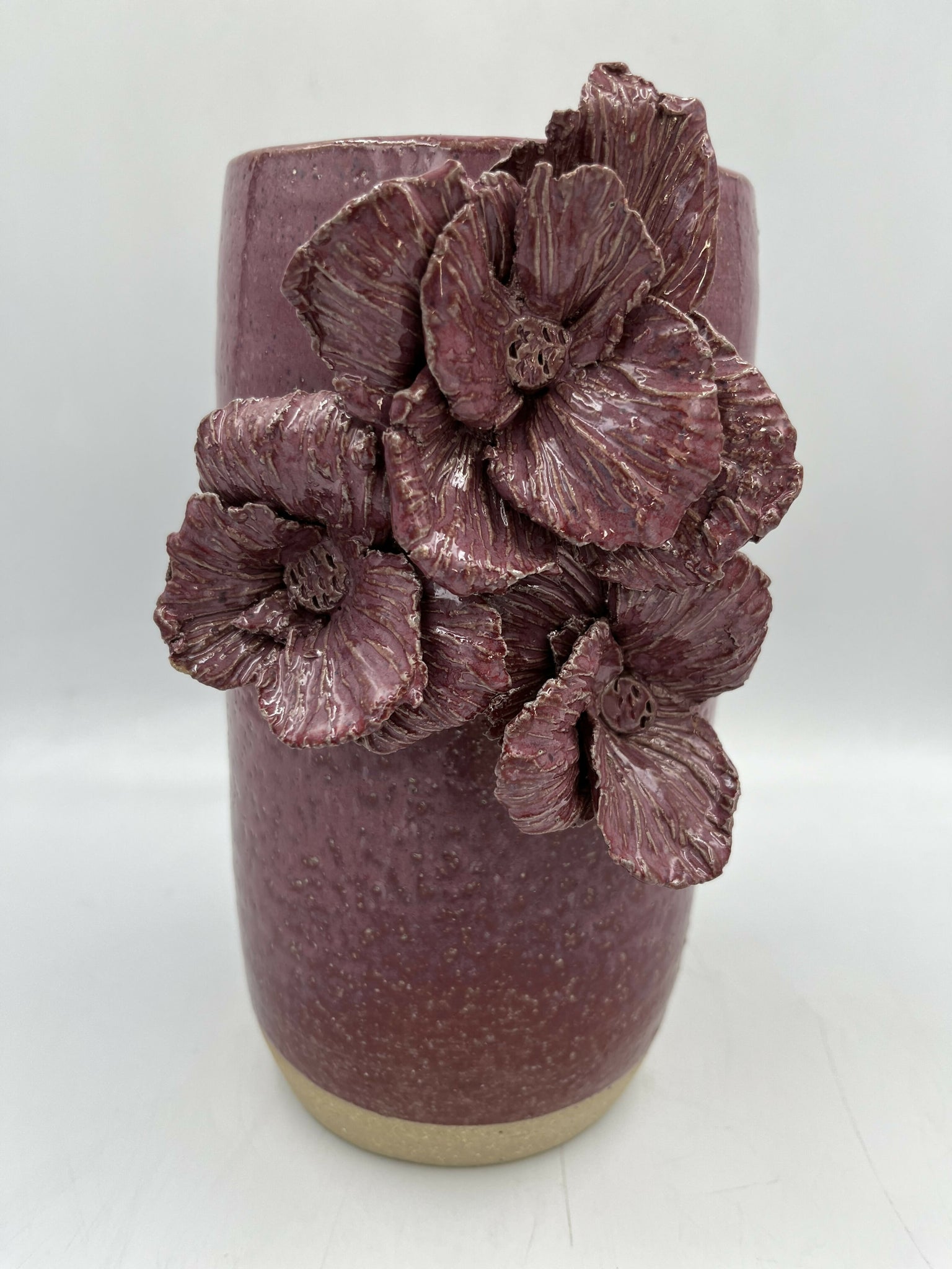Lindo objeto decorativo de cerámica gres con aplicaciones de flores