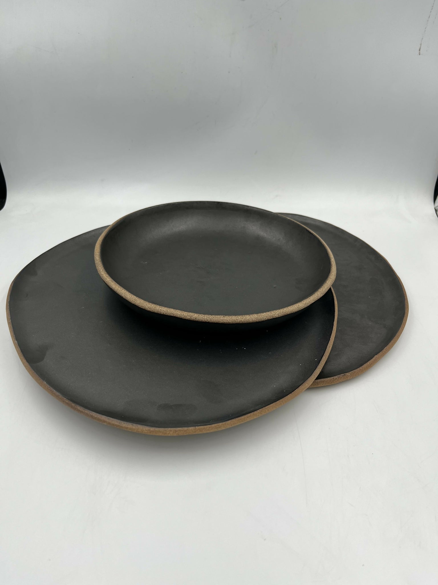Set de 3 platos irregulares cerámica en gres color negro mate
