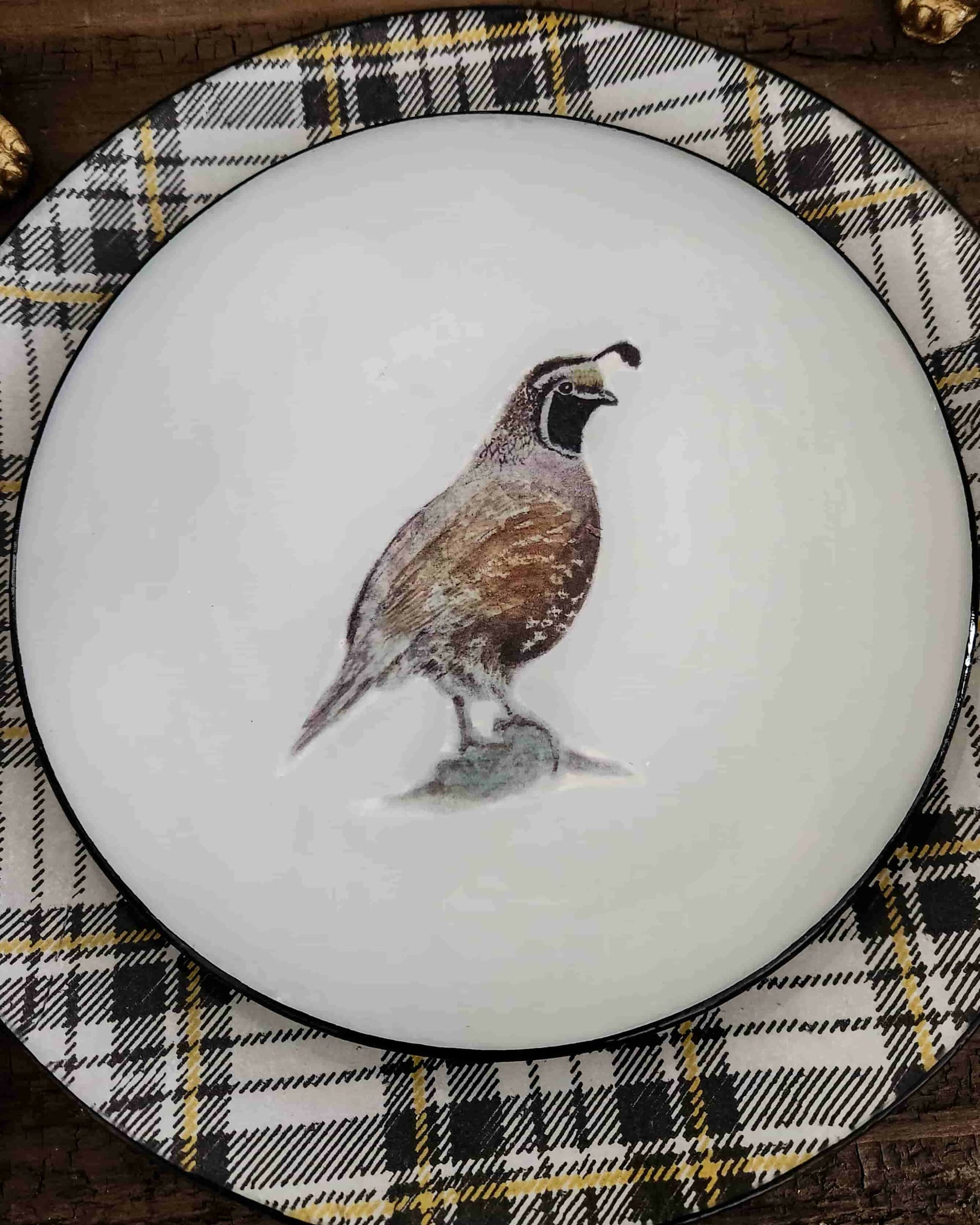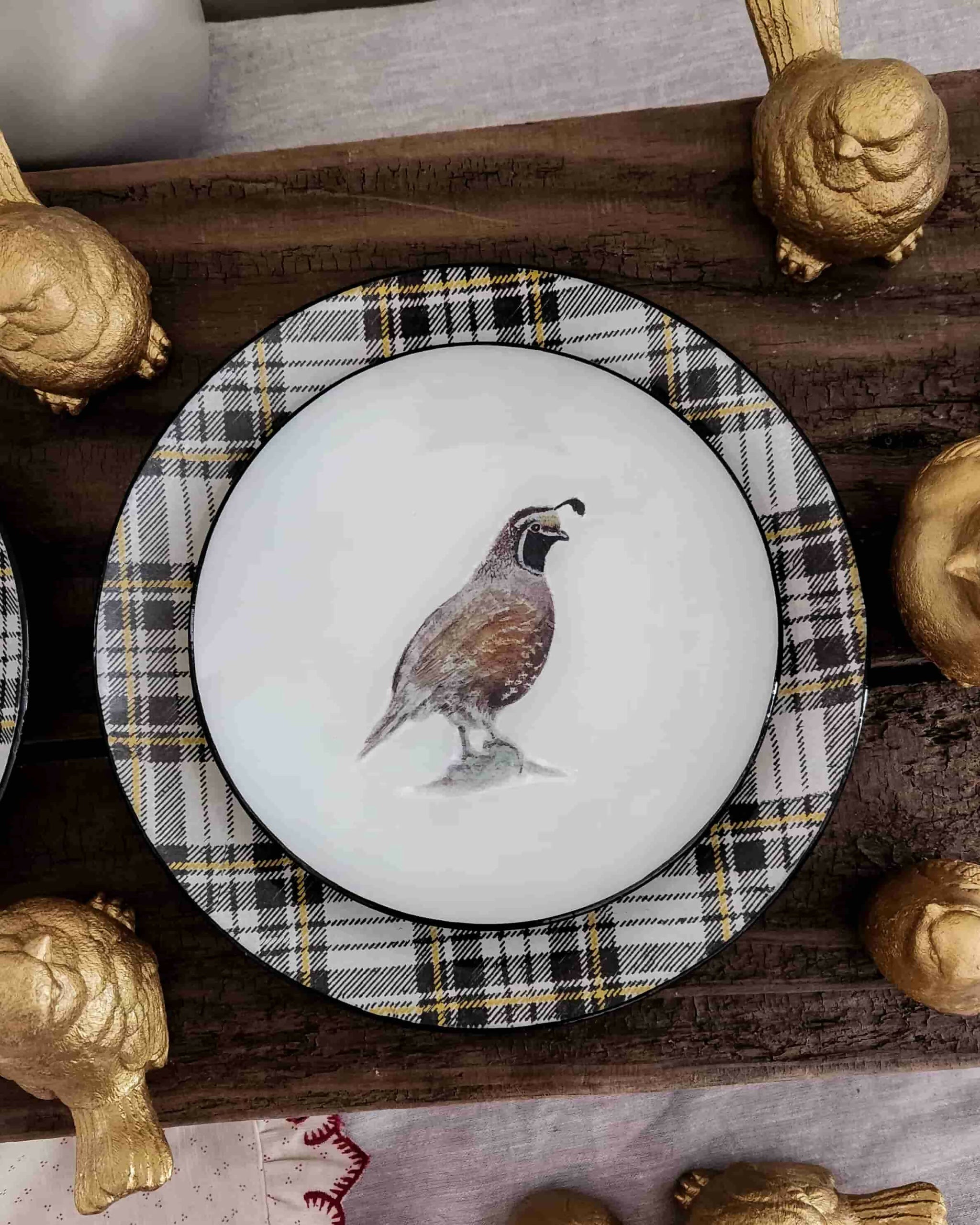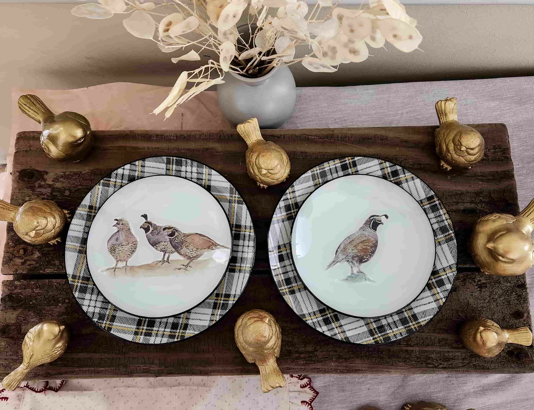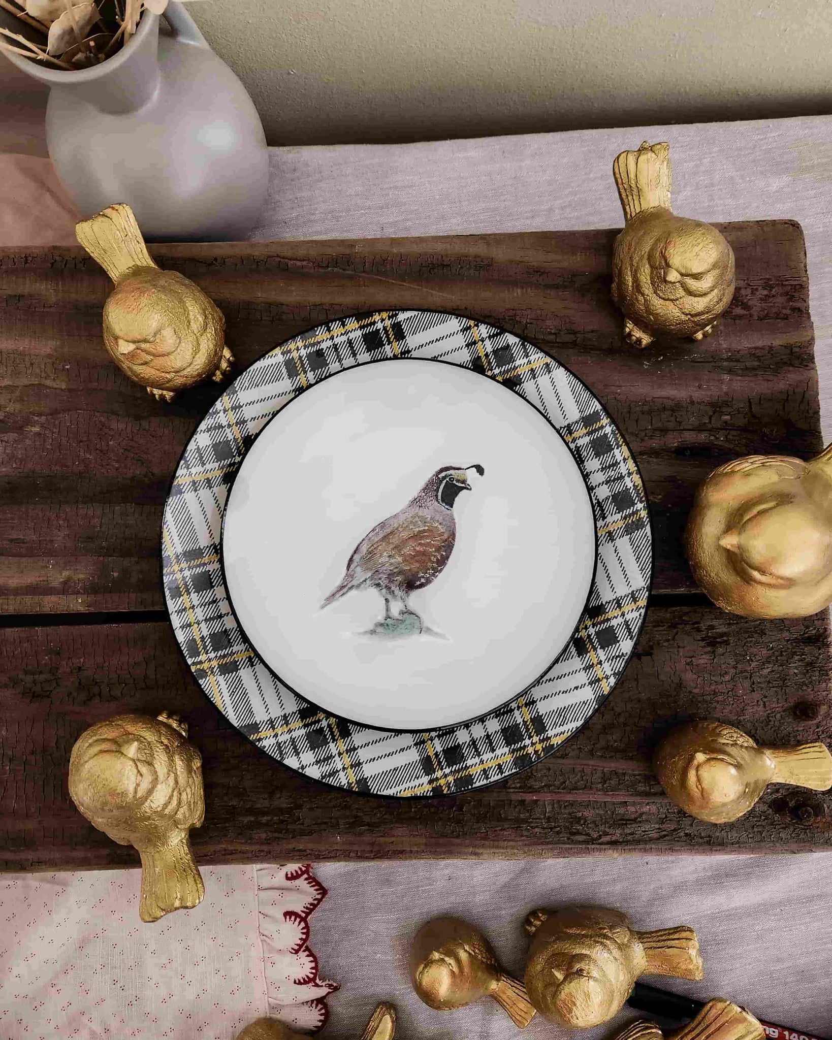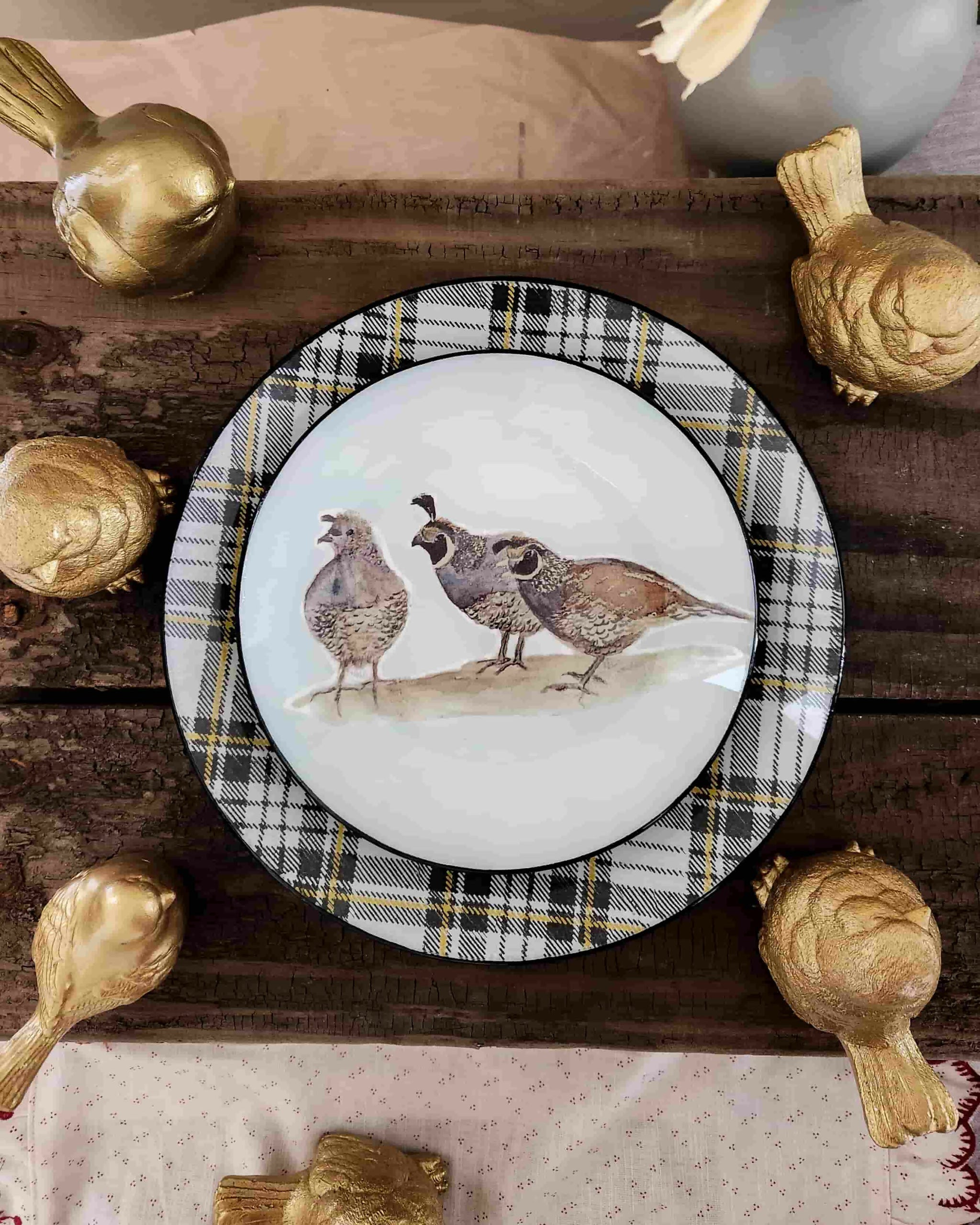 Conjunto de 6 platos de fondo escocés de 25 cm y 6 platos de ensalada/ postre de 19 cm (3 unidades codorniz y 3 unidades grupo de codornices)