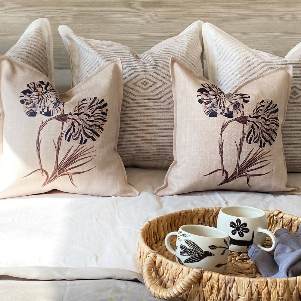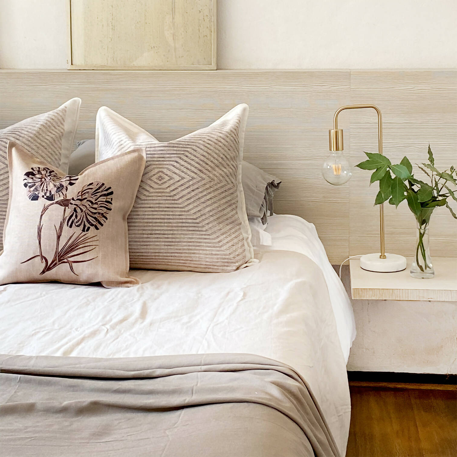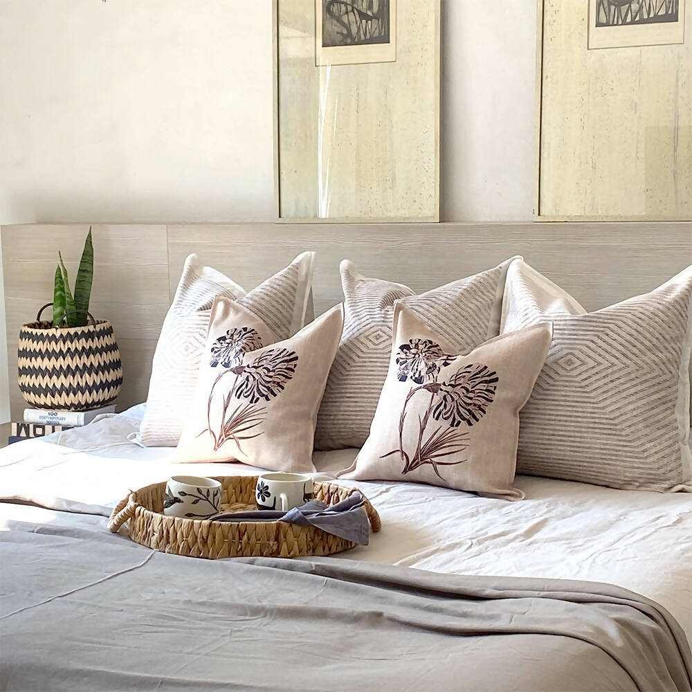 Cojín para renovar tu espacio. Linet (Lino con poliéster) estampado. 45 × 45 cm. con cierre, relleno desmontable.