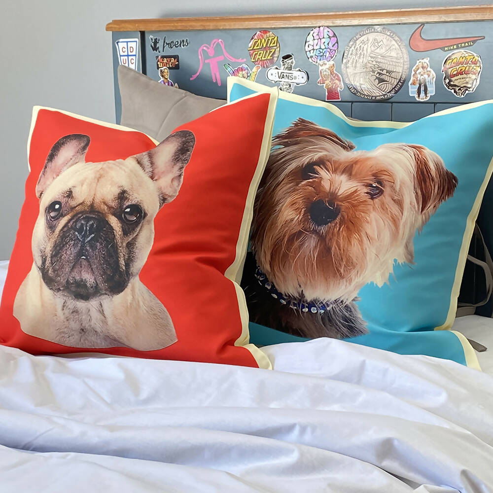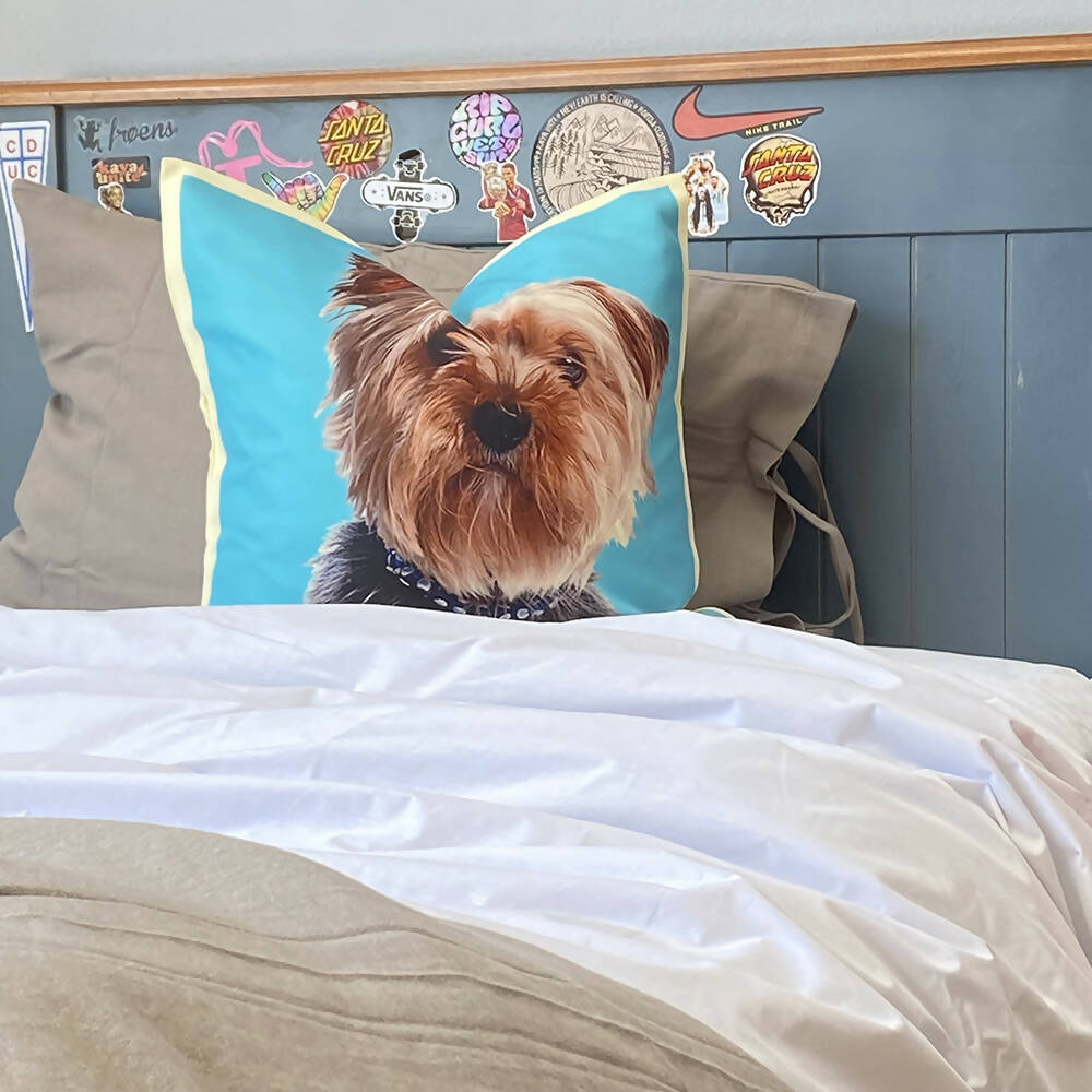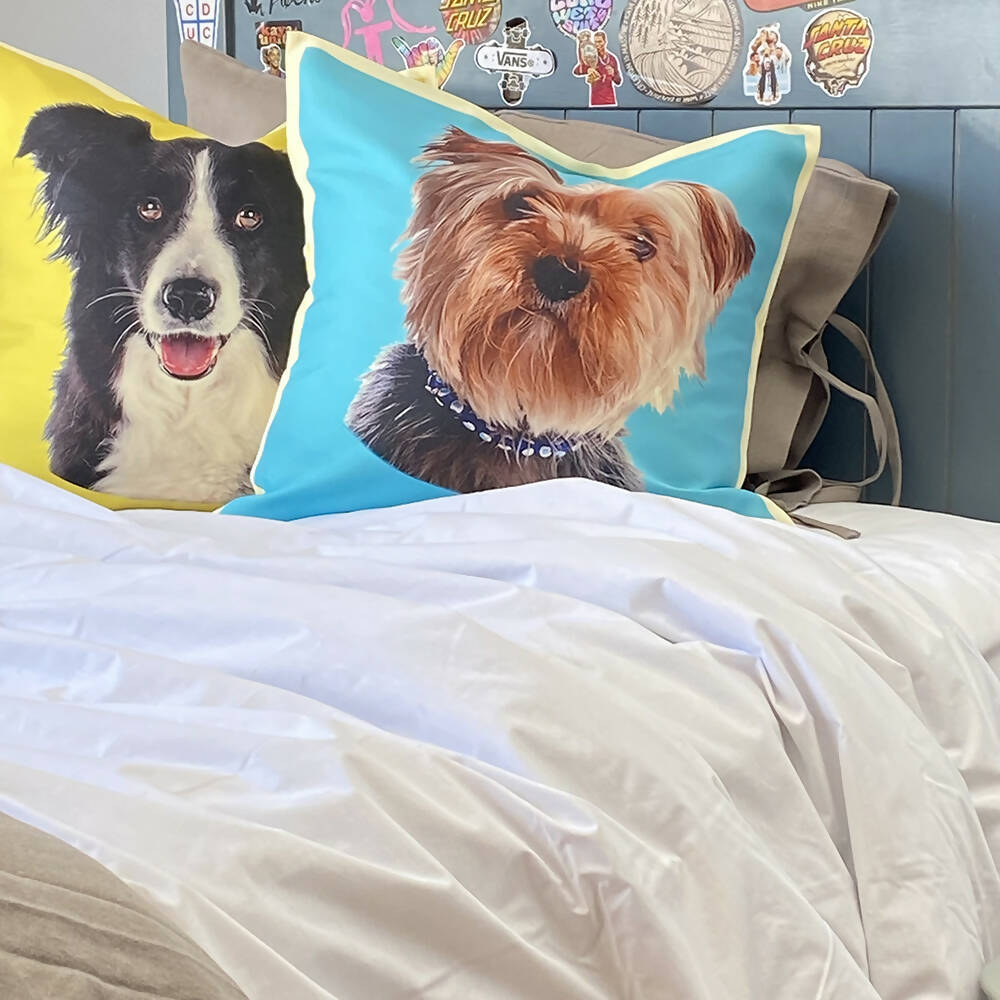 Gracioso y suave cojín estampado de 45 x 45 cm., en formato medio.