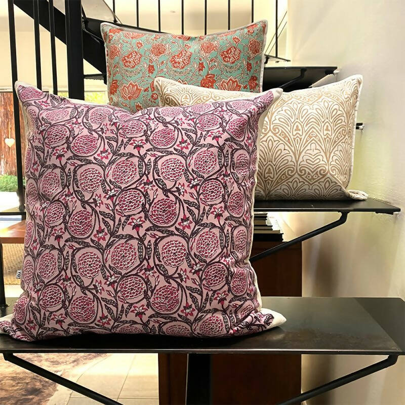Precioso cojín en Velvet crudo estampado de 60 x 60 cm., con suave textura.