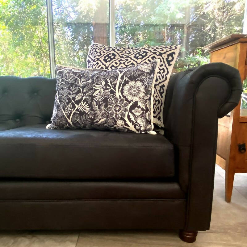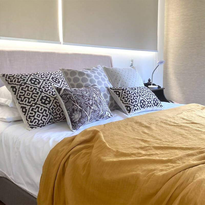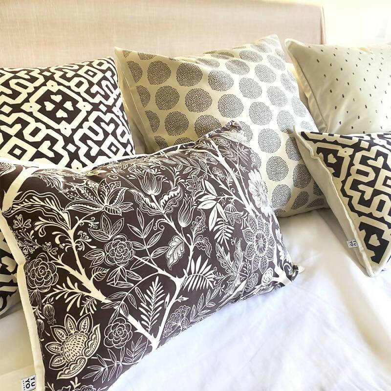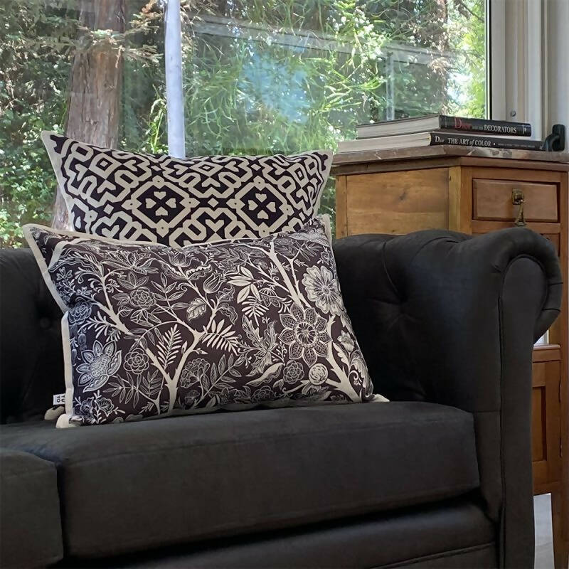 Precioso cojín en Velvet crudo estampado de 40 x 60 cm., con suave textura y formato medio.