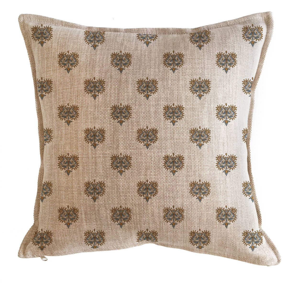 Cojín Paraiso 3 en linet arena estampado 45 x 45 cm.