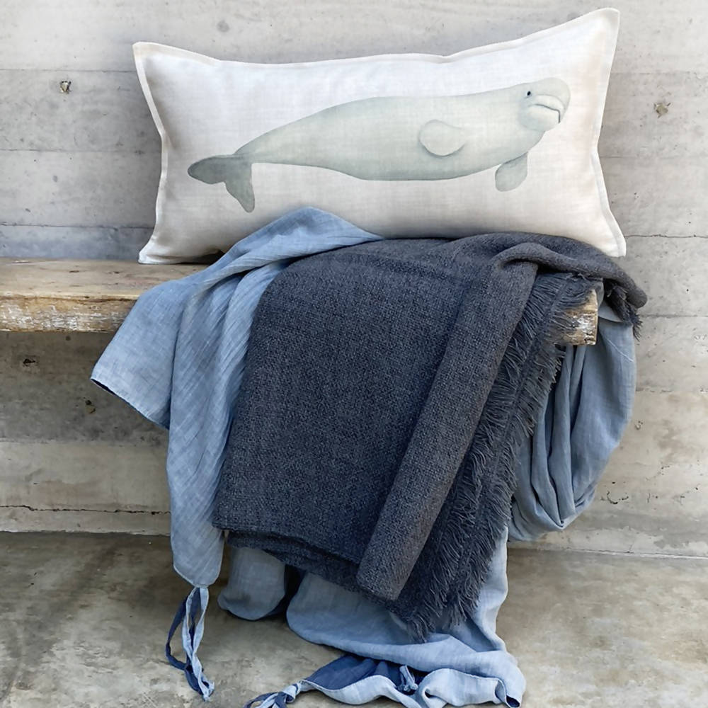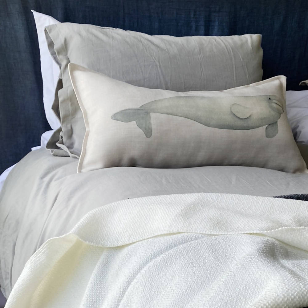 Precioso cojín en Linet (lino con poliéster) crudo estampado de 70x35 cm.