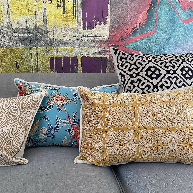 Precioso cojín en Velvet crudo estampado de 40 x 60 cm., con suave textura y formato medio.