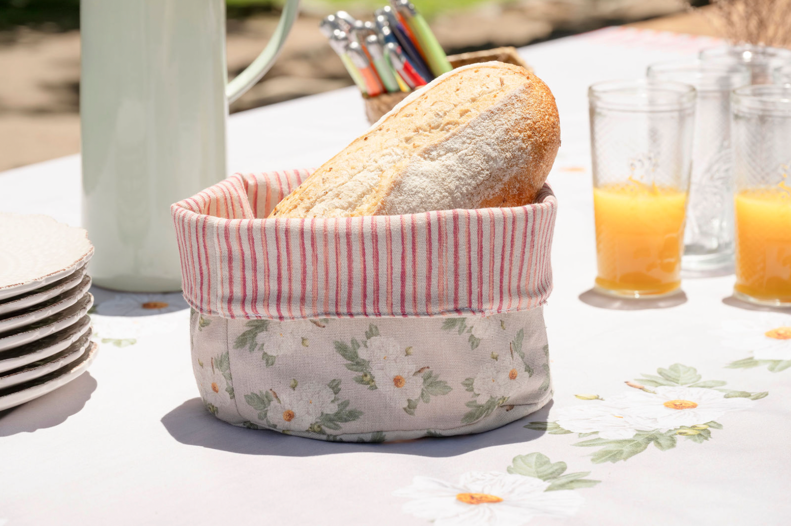 Lleva a tu mesa un pedacito de Chile con esta preciosa panera de género. Cada pieza forma parte de una colección limitada creada exclusivamente para Creado en Chile por la ilustradora chilena Carolina Ruiz, quien dio vida a esta propuesta inspirada en la riqueza natural del país.
