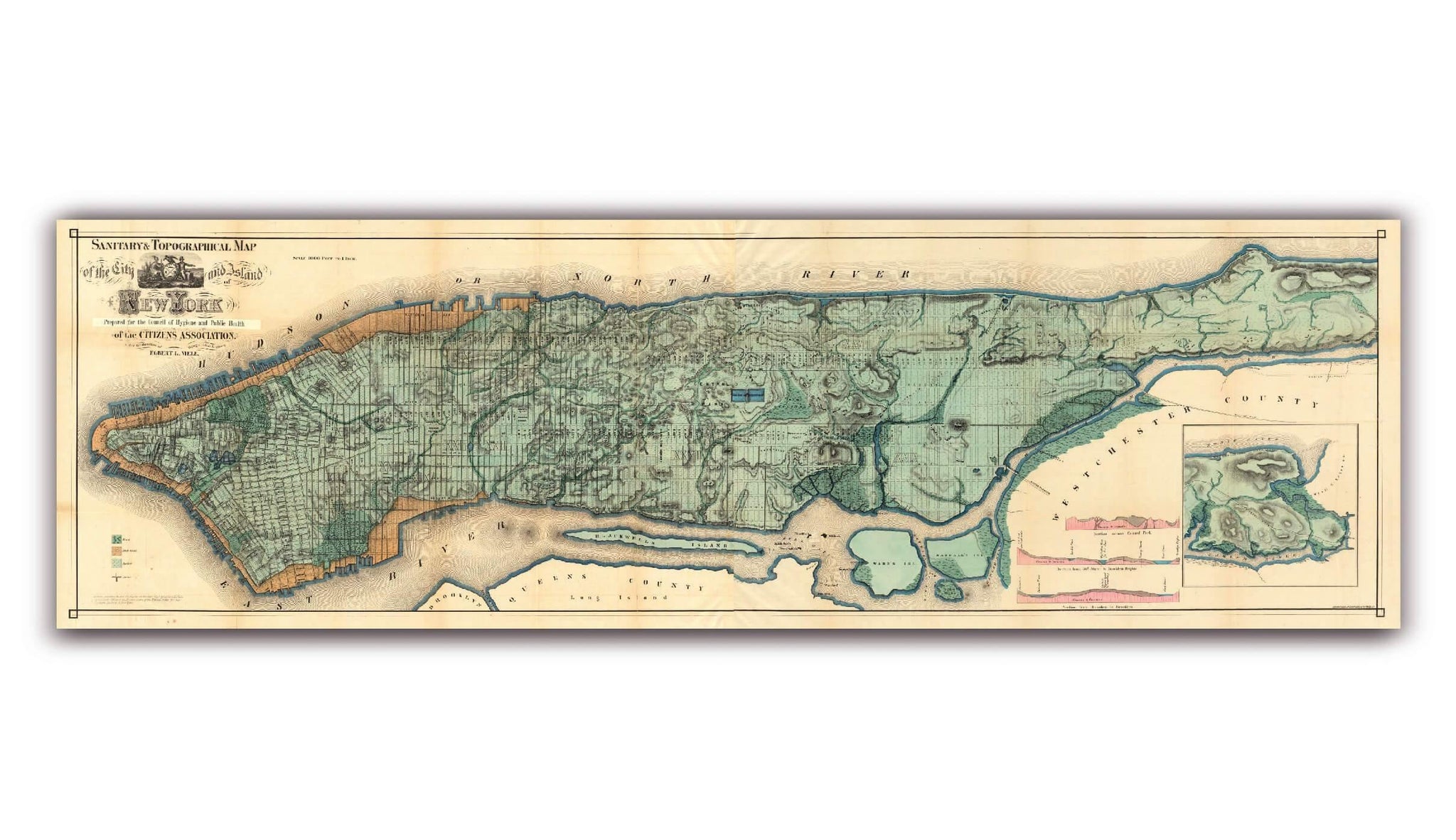 Un hermoso plano de lo que era New York hace algunos siglos atrás, puedes descubrir todas las transformaciones que ha experimentado hasta hoy?. El plano fue diseñado para el consejo de higiene y salud pública, por eso su nombre, nos permite apreciar los bordes rodeados de agua, y la distribución perfecta de su ciudad.
