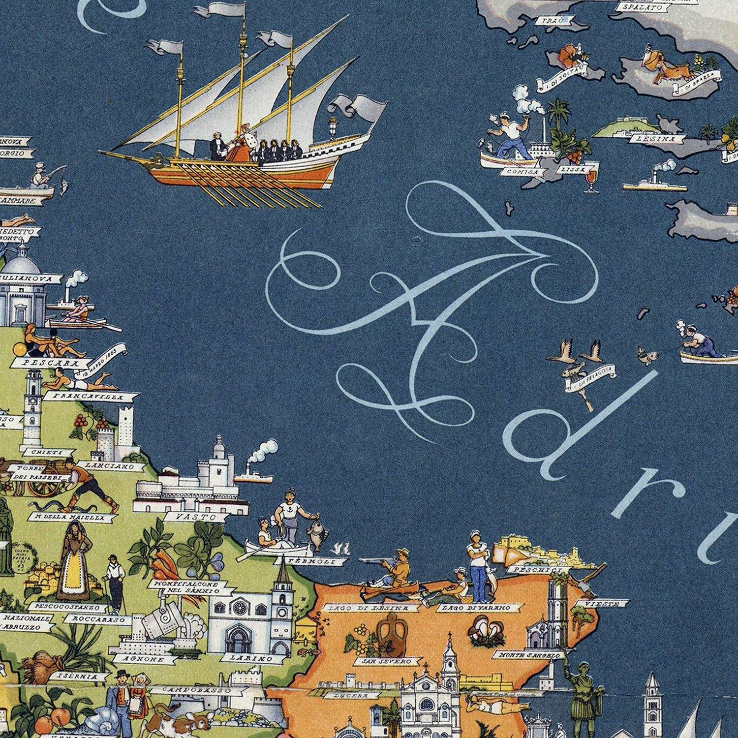 Este Mapa fue realizado justo unos años antes de la Segunda Guerra Mundial, por lo que tiene la particularidad de que muchas ciudades y pueblos que rodean el Mar Adriático, fueron rebautizadas con otros nombres, dependiendo la ocupación que tuvieron posterior a 1945.