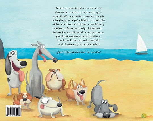 Federico tiene todo lo que necesita dentro de su casa... o eso es lo que cree. Un día, su dueña lo anima a salir a la playa. A regañadientes va, pero lo único que hace es rabiar, ensuciarse y quejarse. De pronto, algo inespersdo lo hará mirar el mundo con otros ojos y se dará cuenta de que la vida es mucho más entretenida cuando se disfruta de las cosas simples. ¿Qué lo hara cambiar de opinión?