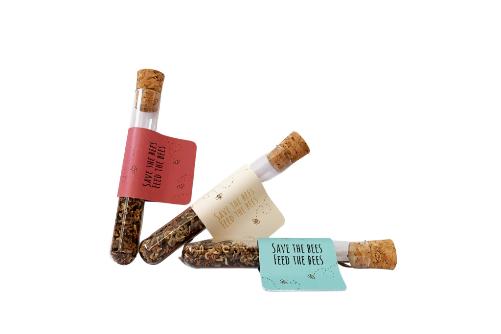 Mix de Semillas de flores polarizadoras en un tubo de vidrio con tapa de corcho.