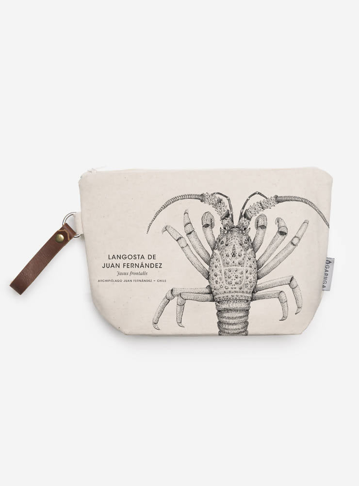 Neceser 100% algodón con forro interior y tirante de cuero.