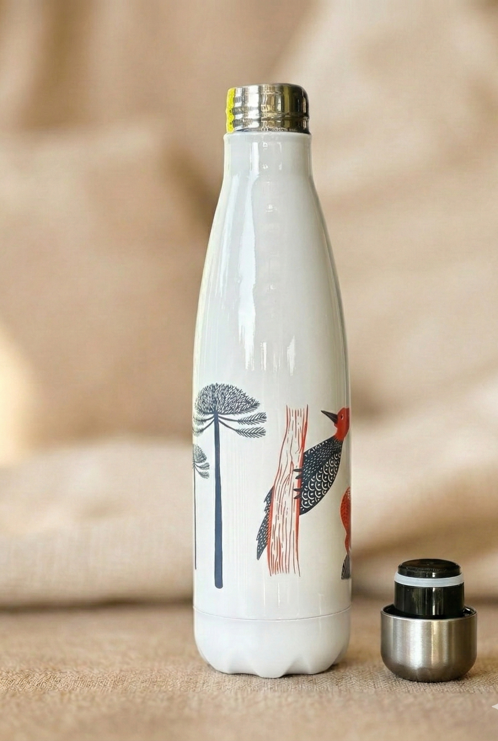Lleva contigo una parte de la naturaleza autóctona de Chile, con nuestras botellas térmicas de acero inoxidable de 500ml con ilustraciones exclusivas realizadas a mano por Hued hued. Estas botellas son ideales tanto para el día a día, como para llevarlos de camping o alguno de tus paseos favoritos a la montaña, al bosque, al río, o al desierto. Son 8 diseños para coleccionar: Flora Nativa, Loicas, Reino Fungi, Aves Rapaces, Felinos, Bosques del Sur, Fauna de Chile, y Picaflores.