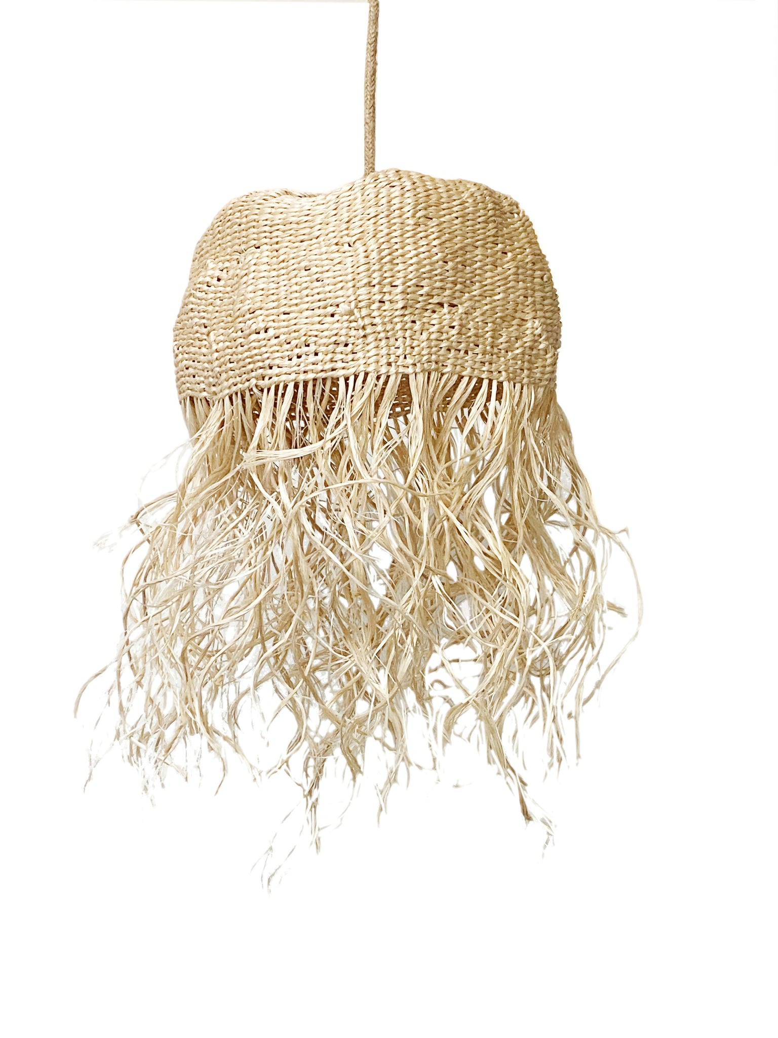 Lampara tejida a mano en tecnica de cesteria diametro 30cm altura tejido 15 cm aprox