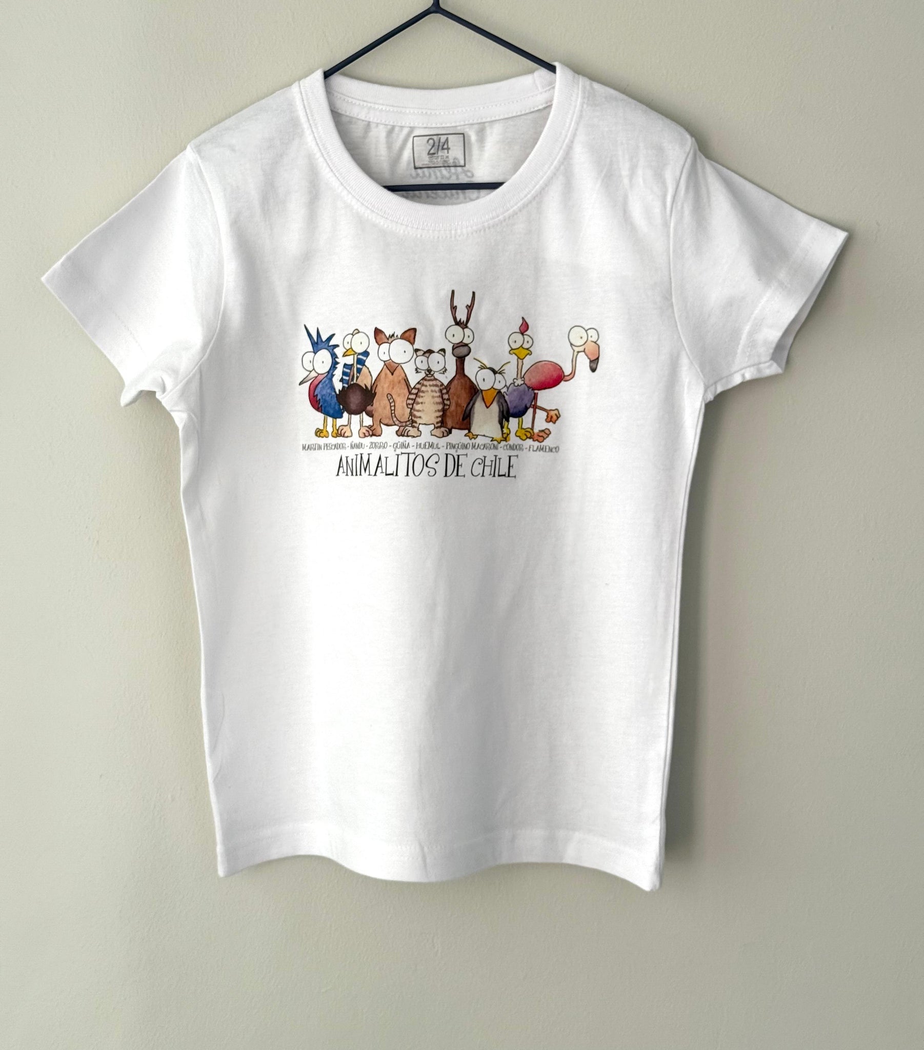 Polera Manga Corta Niños Animalitos de Chile Tallas 2 a 12