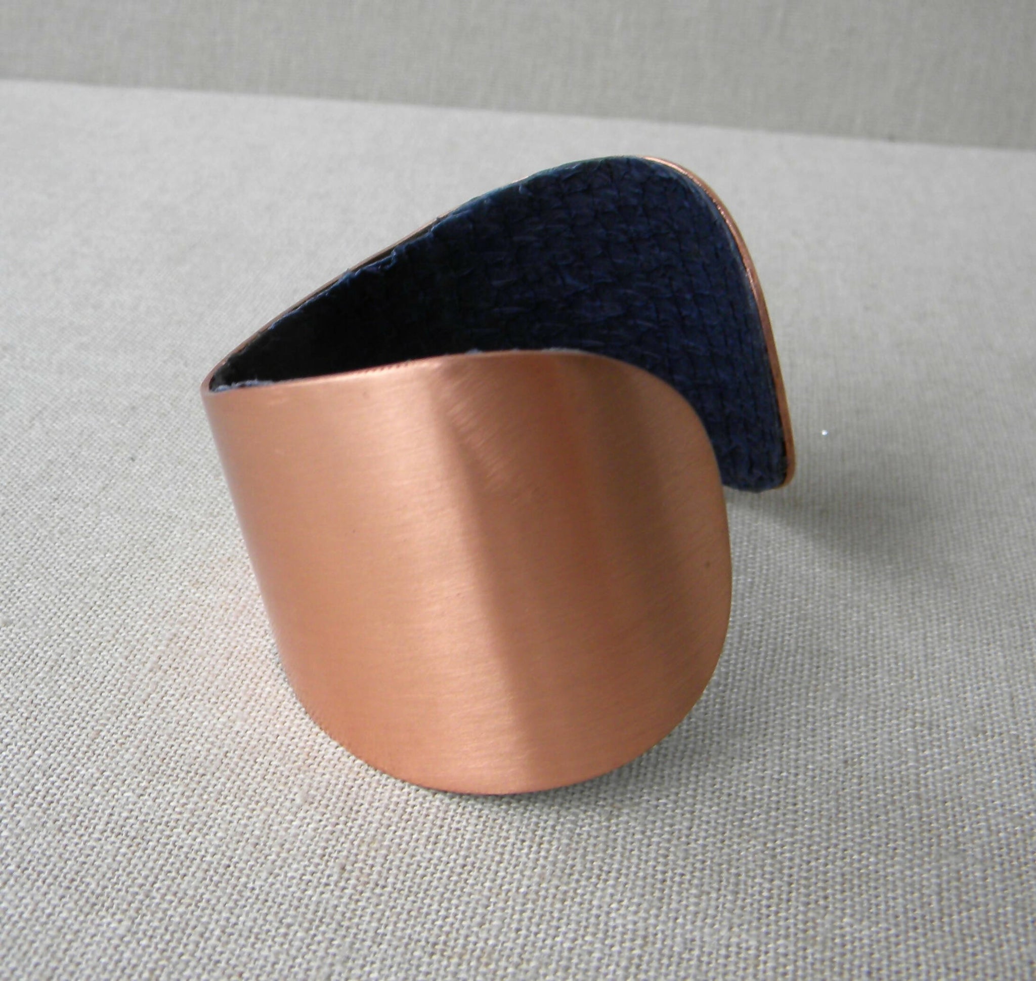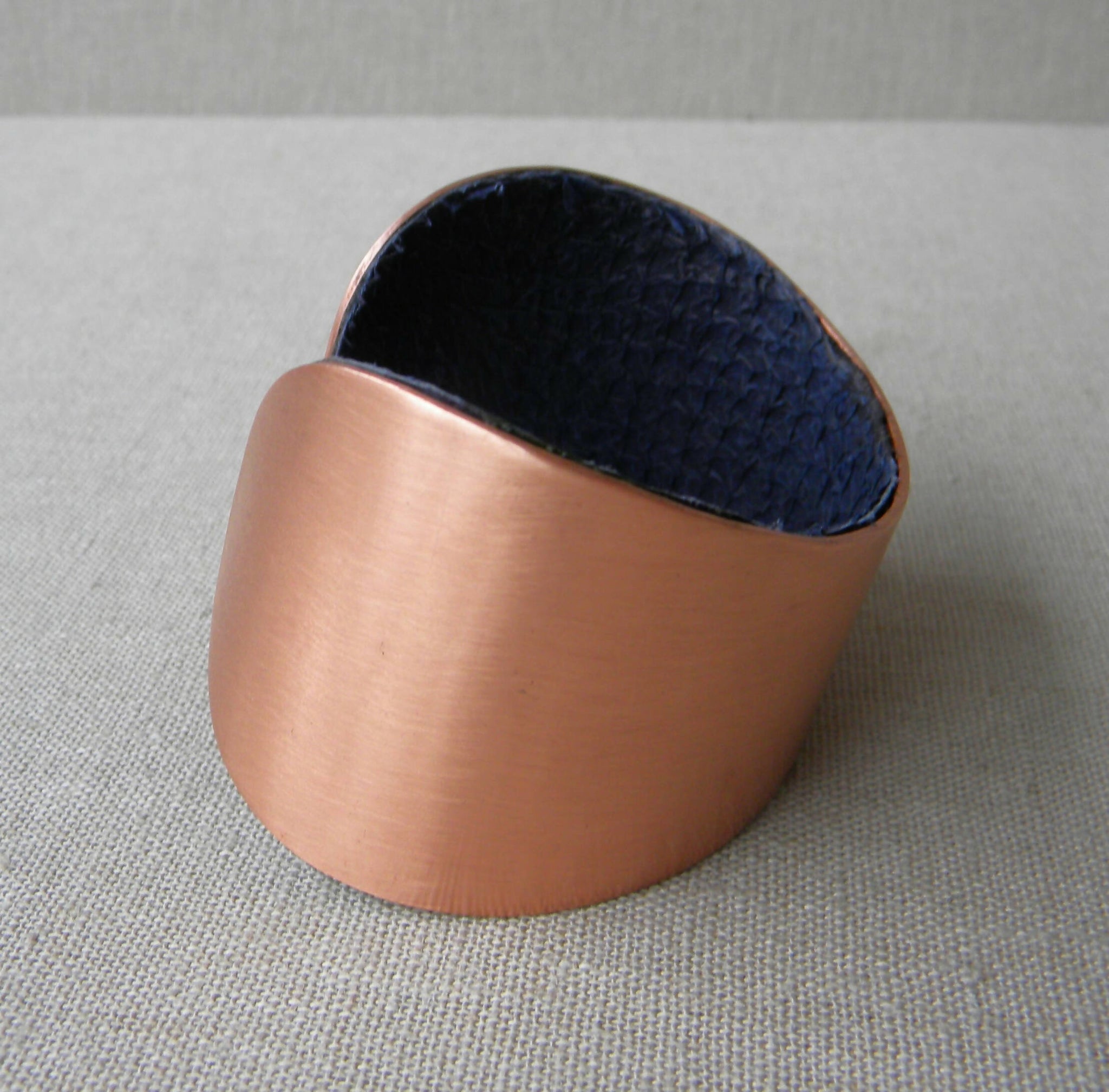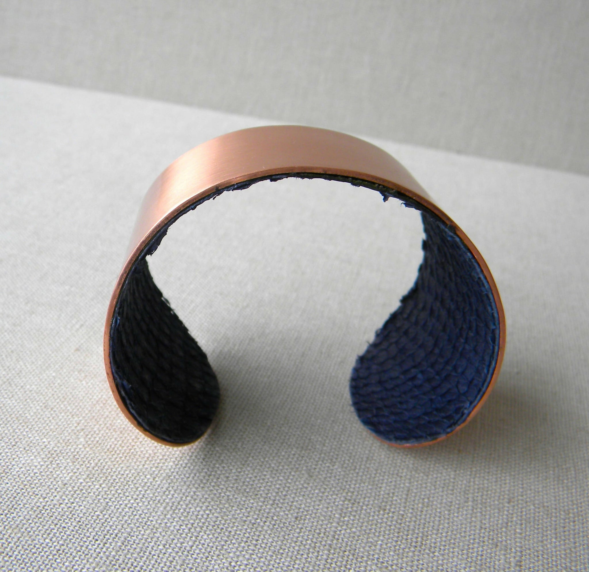 ESCLAVA COBRE LISA CON CUERO DE SALMÓN AZUL