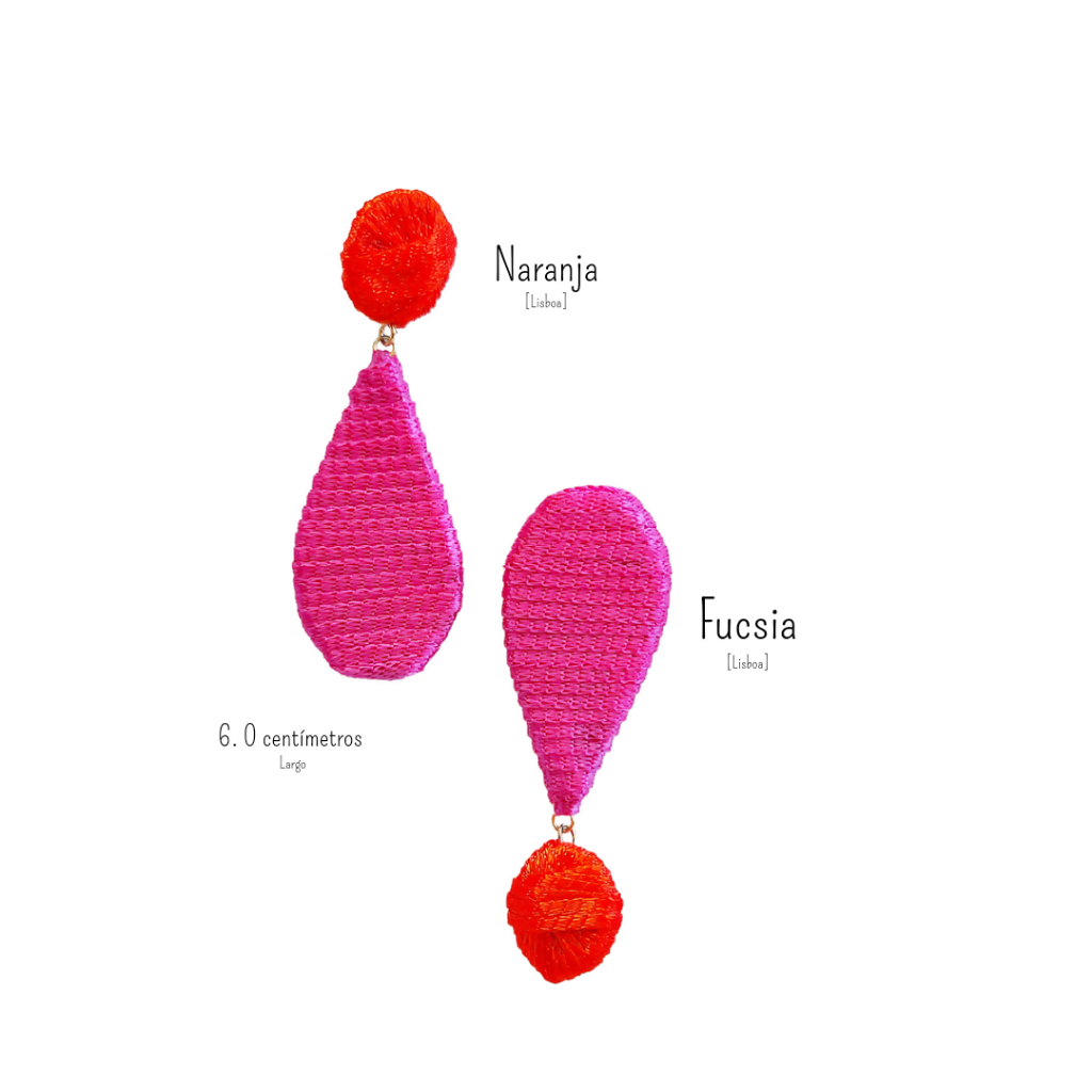 Los aros Lisboa en forma de gota están pensados desde un concepto retro, que mezcla alegría y contraste de color. Estos aros son muy versátiles, ya que se adaptan a cualquier tenida, iluminando tu rostro y llevando tu look al siguiente nivel.