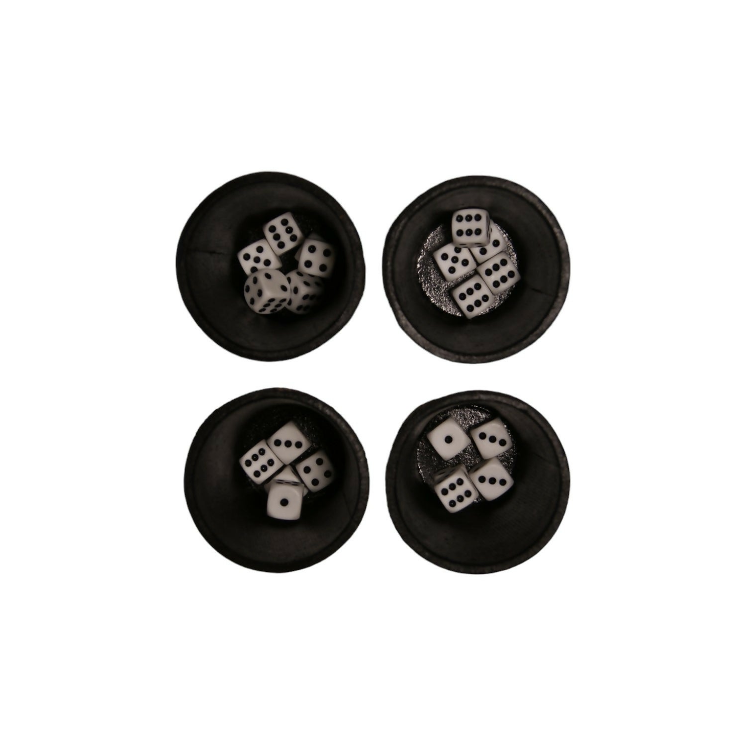 El set de cachos con caja es una obra maestra que combina estilo y funcionalidad. Este exclusivo set, con 4 vasos de cuero, dados y una caja elegante, está diseñado para ofrecerte una experiencia de juego superior.